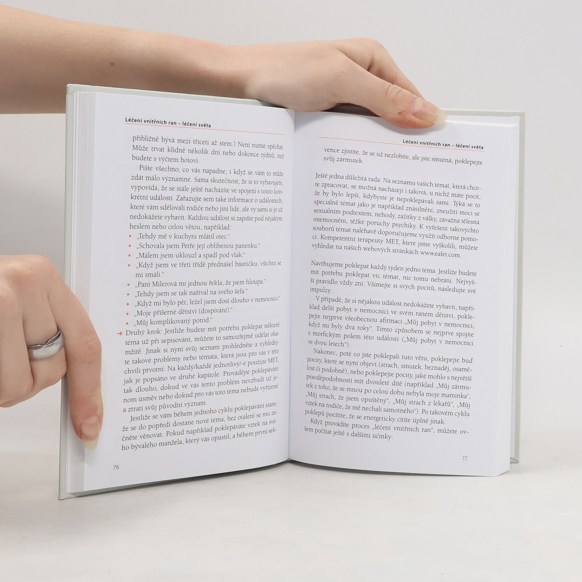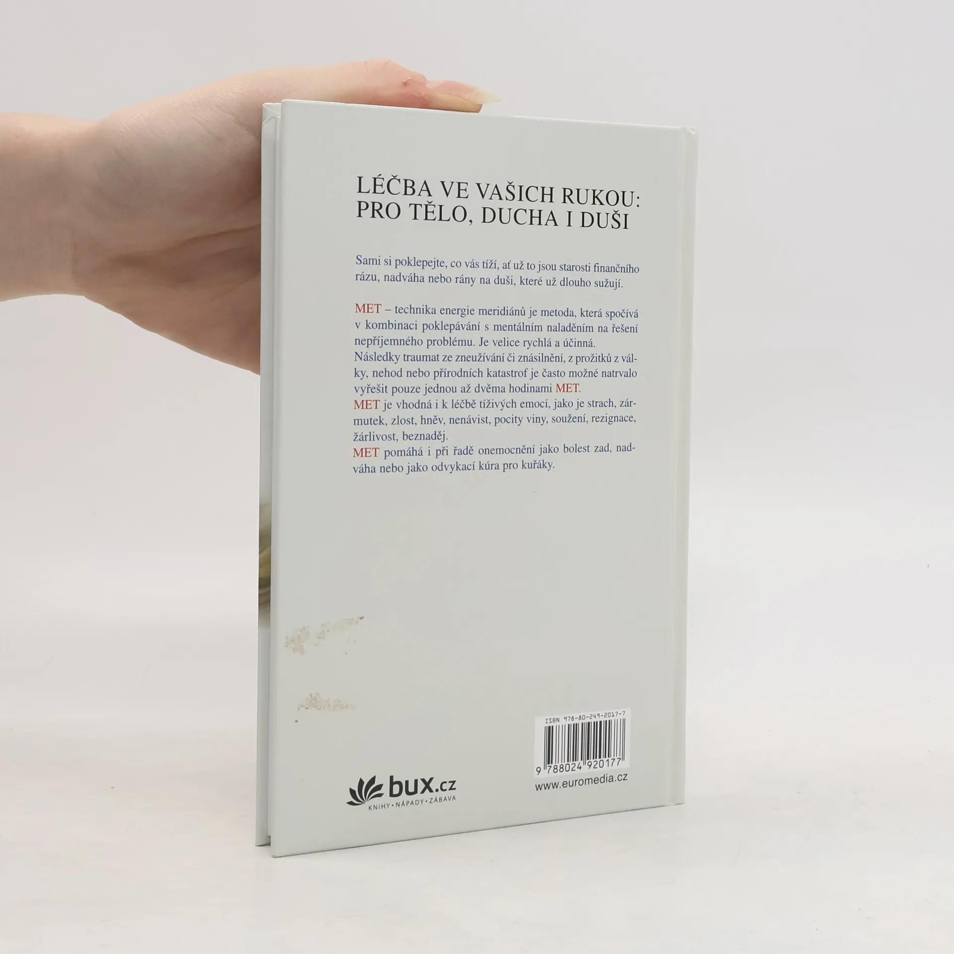 Technika energie meridiánů (MET) je metoda, která spočívá v kombinaci poklepávání s mentálním naladěním na řešení problému. Je velice rychlá a účinná. Sami si poklepejte, co vás tíží. MET je vhodná při odstranění následků traumat ze zneužívání či znásilnění, nehod nebo přírodních katastrof, ale i k léčbě tíživých emocí, jako je strach, zármutek, zlost, hněv, nenávist, pocity viny, soužení, rezignace, žárlivost, beznaděj. MET pomáhá i při řadě onemocnění jako bolest zad, nadváha nebo jako odvykací kúra pro kuřáky.