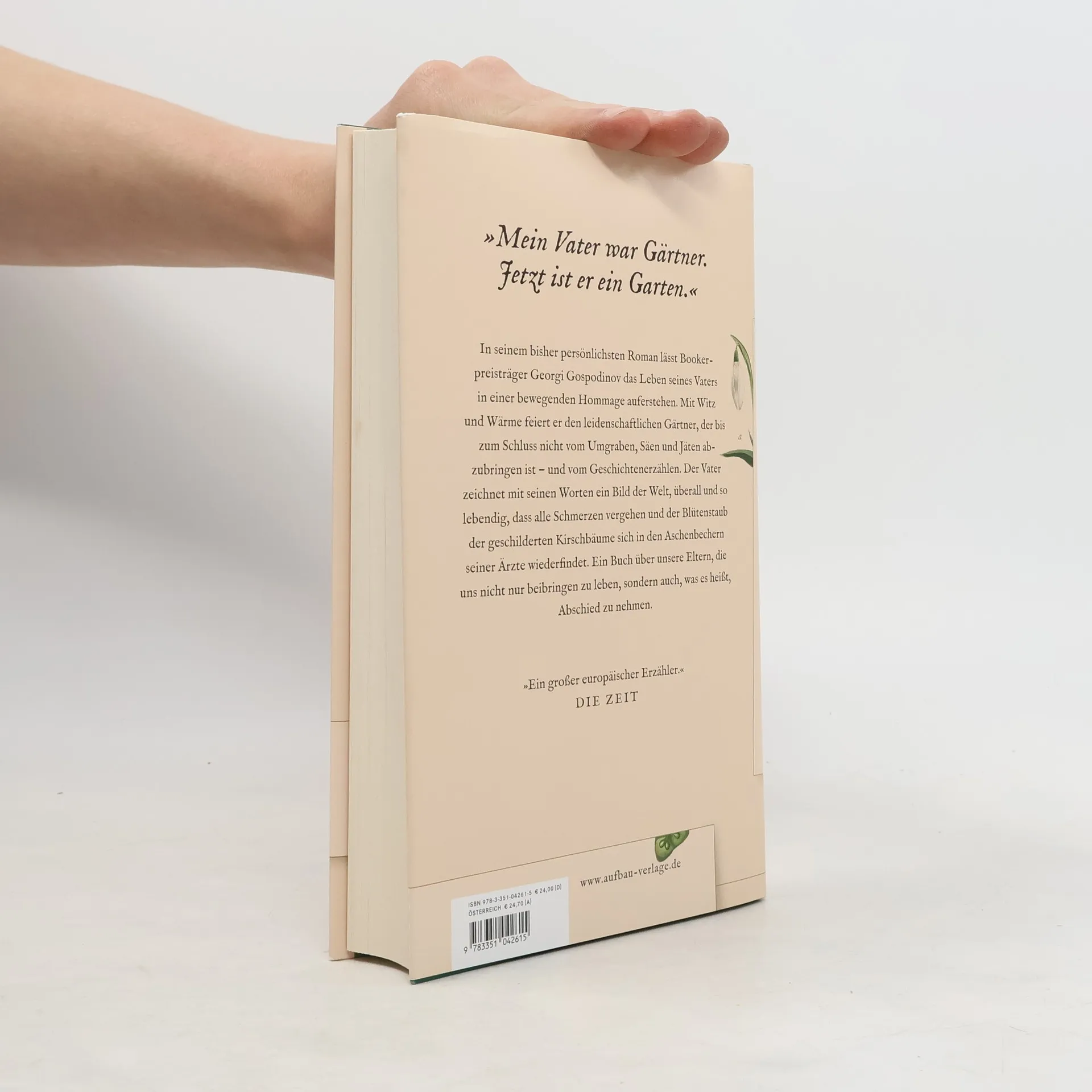 »Mein Vater war Gärtner. Jetzt ist er ein Garten.« In seinem bisher persönlichsten Roman lässt Georgi Gospodinov das Leben seines Vaters in einer bewegenden Hommage auferstehen. Mit Witz und Wärme feiert er den leidenschaftlichen Gärtner, der bis zum Schluss nicht vom Umgraben, Säen und Jäten abzubringen ist – und vom Geschichtenerzählen. Der Vater zeichnet mit seinen Worten ein Bild der Welt, überall und so lebendig, dass alle Schmerzen vergehen und der Blütenstaub der geschilderten Kirschbäume sich in den Aschenbechern seiner Ärzte wiederfindet. Ein Buch über unsere Eltern, die uns nicht nur beibringen zu leben, sondern auch, was es heißt, Abschied zu nehmen. »Einer der bedeutendsten Schriftsteller Europas. Jedes Buch ist ein Ereignis.« Garth Greenwell