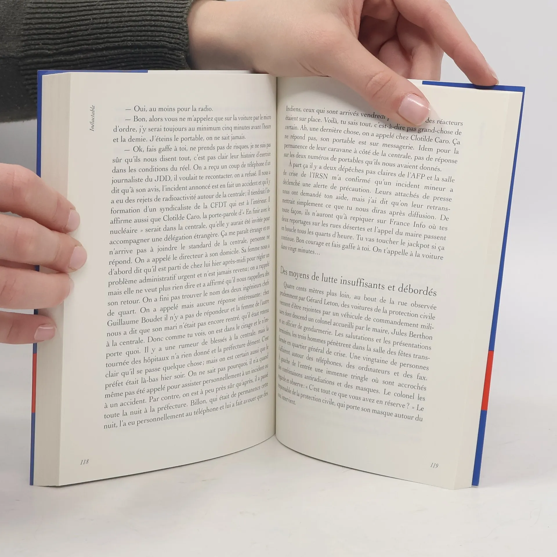U n jour d'hiver, une délégation indienne débarque à Paris pour formaliser l'achat de quatre réacteurs nucléaires. Peu à peu, parce que son responsable, Kuldip Badhwar, a des exigences particulières formulées au cours d'une visite surprise à la centrale de Cattenheim, un drame se noue. L'inquiétude monte autour d'un réacteur qui perd peu à peu la raison et sa radioactivité, renvoyant tous les protagonistes, un ministre, un patron du BTP, une ingénieure, un responsable de salle de commande, une écologiste, un préfet et le polytechnicien indien à leurs contradictions, leurs certitudes et leurs fantasmes. Le roman à rebondissement d'un huis clos de quelques heures dont nul ne sortira indemne puisque pour une écologiste exceptionnellement embarquée au coeur d'une centrale, l'accident nucléaire est inéluctable. Ce roman de l'angoisse, du mensonge et de la raison d'État reprend quelques-uns des personnages du film Inéluctable, dont le scénario a été conçu pour ARTE par Alain Moreau avec la participation de Claude-Marie Vadrot.