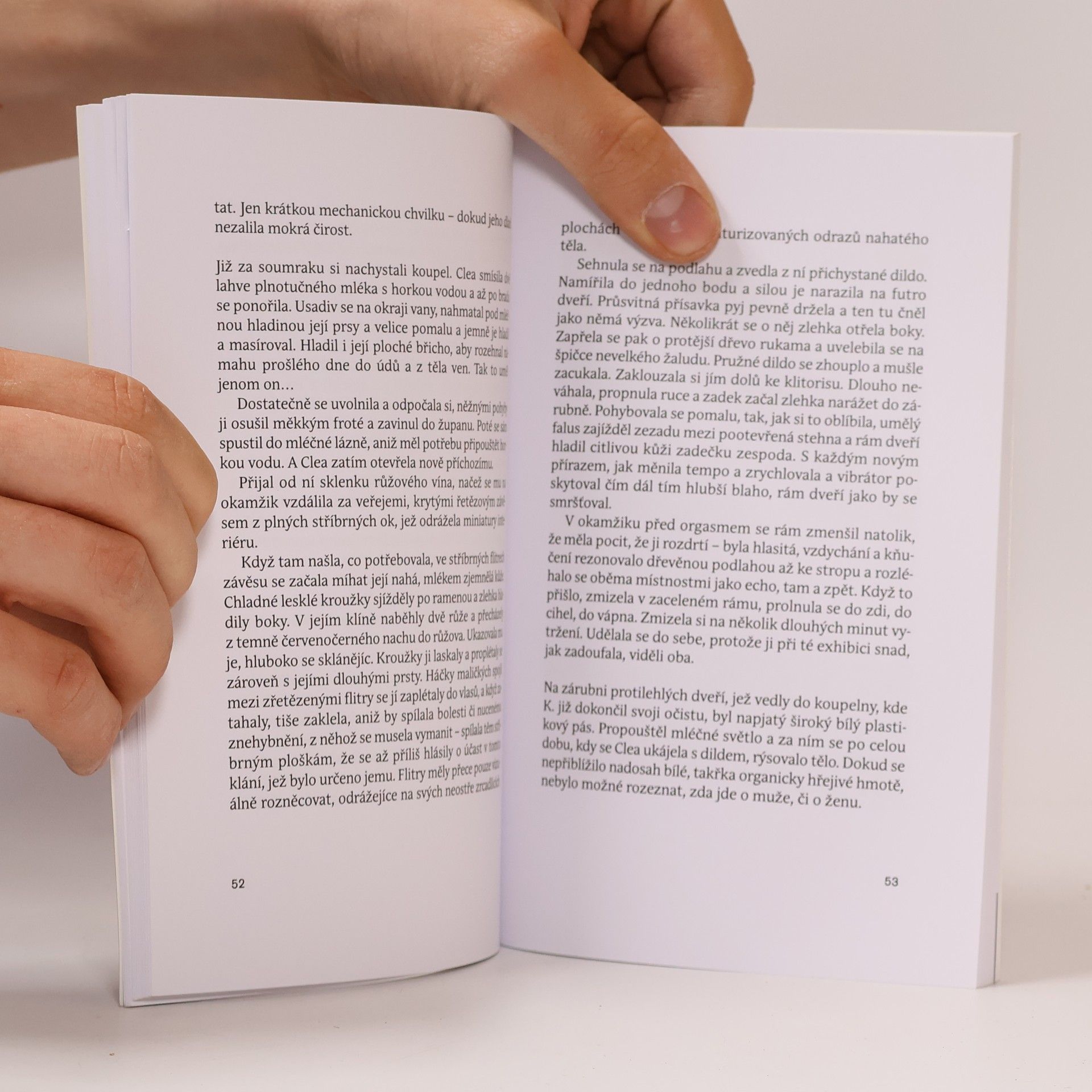 Hrdinka snové eroticko-sentimentální novely zkoumá svět trochu jinak, než jsme zvyklí. Od dětského poznávání tělesnosti s jeho zakoušením erotického napětí přes bolest a magické myšlení až ke zcela dospělému uspokojování sexuálního pudu. Do příběhu vstupují zásadní otázky této literární hry na "spiklence slasti" plastové doby: Může se jednou stát nymfa madonou? Může se beztrestně křičet na veřejnosti? Může se čůrat do vany? Po povídkách Vrhnout se autorka vydala do krajiny svobodné rozkoše, kde objevuje erotismus smetiště, igelitu, něžný svistot biče, nymfomanii i libertinství, a vydává tak svědectví o základní lidské touze: milovat.