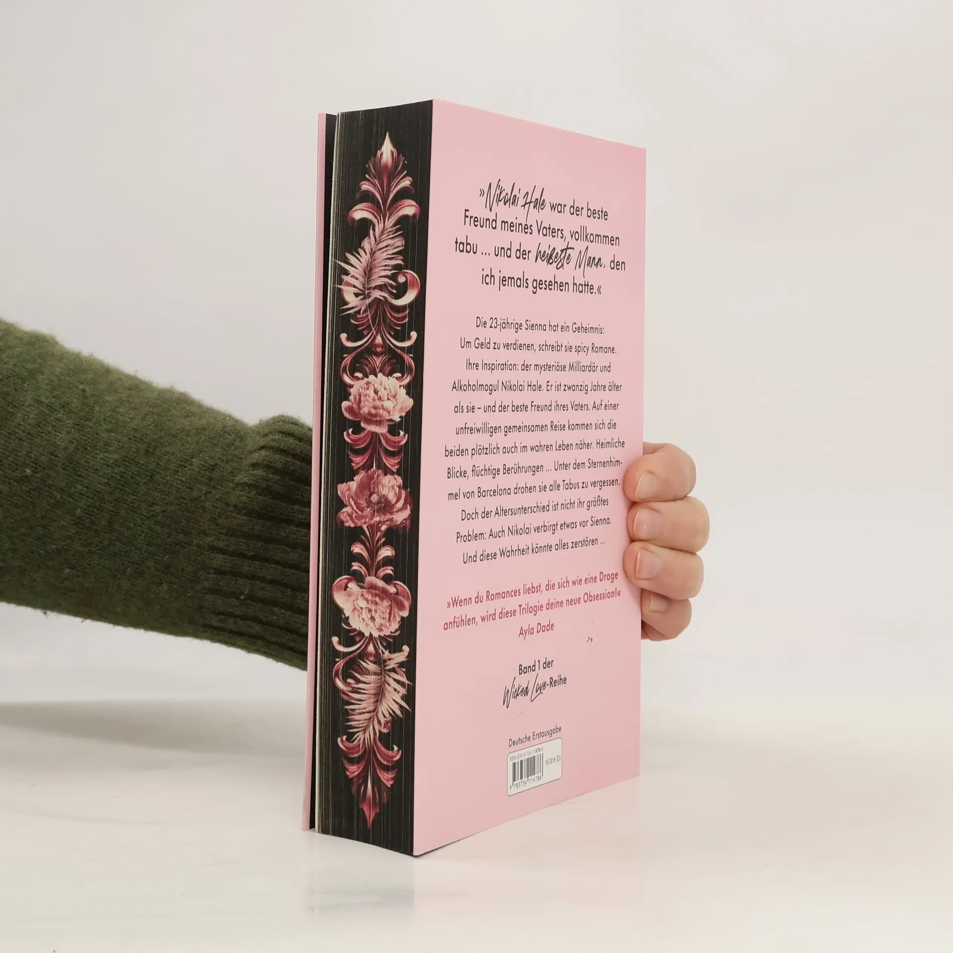 Moralische Grauzonen, verbotene Fantasien und unanständig viel Spice: Die neue Romance-Trilogie von SPIEGEL-Bestsellerautorin Bianca Mov bricht alle Tabus! ***Der gestaltete Buchschnitt ist auf eine limitierte Auflage begrenzt.*** Die 23-jährige Sienna hat ein Geheimnis: Um Geld zu verdienen, schreibt sie spicy Romane. Ihre Inspiration: Der mysteriöse Milliardär und Alkohol-Mogul Nikolai Hale. Er ist 20 Jahre älter als sie – und der beste Freund ihres Vaters. Auf einer unfreiwilligen gemeinsamen Reise kommen sich die beiden plötzlich auch im wahren Leben näher. Heimliche Blicke, flüchtige Berührungen … Unter dem Sternenhimmel von Barcelona drohen sie alle Tabus zu vergessen. Doch der Altersunterschied ist nicht ihr größtes Problem: Auch Nikolai verbirgt etwas vor Sienna. Und diese Wahrheit könnte alles zerstören … Der Auftakt der sexy Tabu-Romance-Reihe »Wicked Love«! Grumpy x Sunshine trifft auf Age Gap! ***Mit Farbschnitt nur in limitierter Auflage.*** Books that make you – blush. Du suchst Liebesgeschichten mit reichlich Spice, mitreißenden Tropes oder morally grey book boyfriends? Dann entdecke weitere Bücher von Blush!