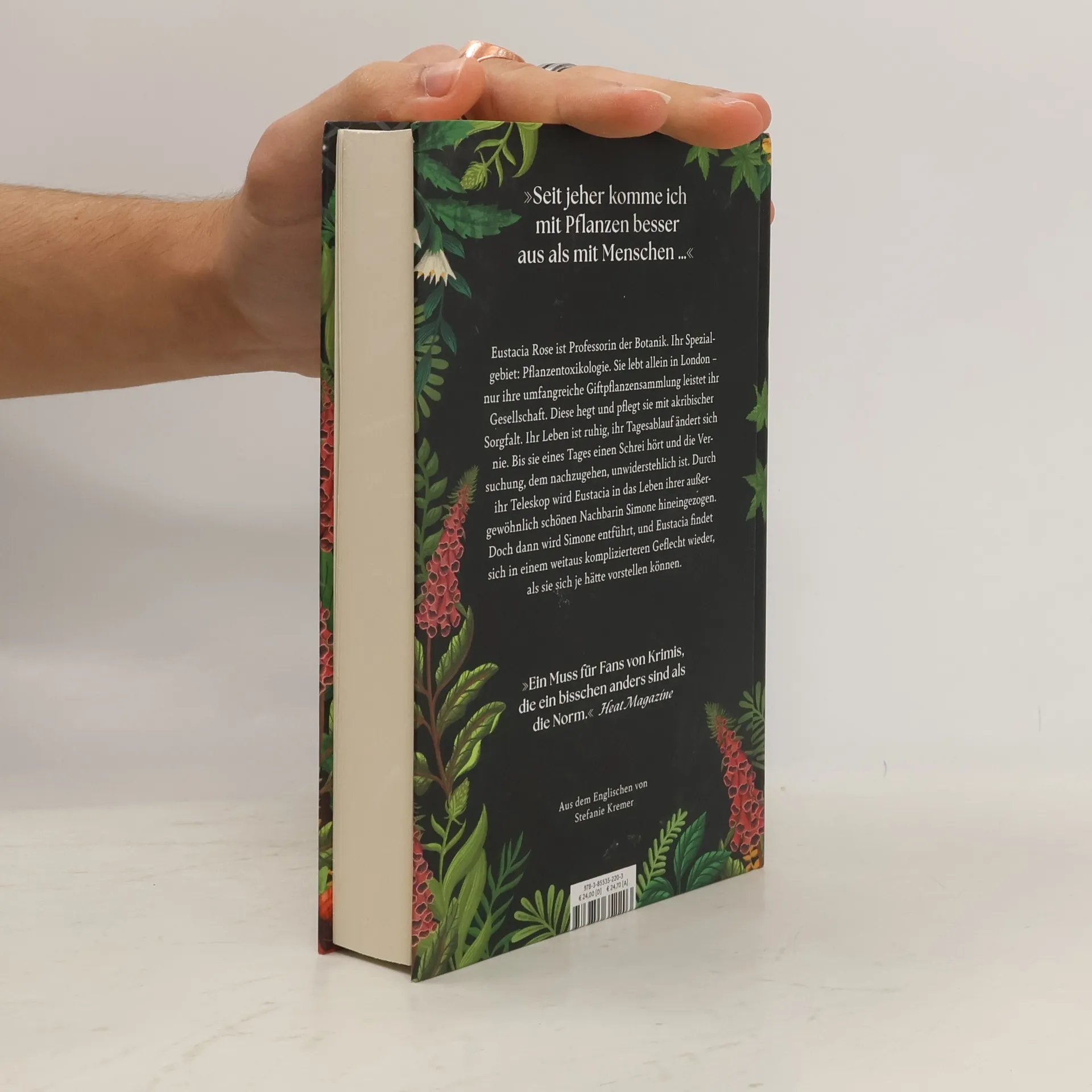 »Seit jeher komme ich mit Pflanzen besser aus als mit Menschen ...« Eustacia Rose ist Professorin der Botanik. Ihr Spezialgebiet: Pflanzentoxikologie. Sie lebt allein in London - nur ihre umfangreiche Giftpflanzensammlung leistet ihr Gesellschaft. Diese hegt und pflegt sie mit akribischer Sorgfalt. Ihr Leben ist ruhig, ihr Tagesablauf ändert sich nie. Bis sie eines Tages einen Schrei hört und die Versuchung, dem nachzugehen, unwiderstehlich ist. Durch ihr Fernrohr wird Eustacia in das Leben ihrer außergewöhnlich schönen Nachbarin Simone hineingezogen. Doch dann wird Simone entführt, und Eustacia findet sich in einem weitaus komplizierteren Geflecht wieder, als sie sich je hätte vorstellen können. Für Fans von Mark Haddon und Richard Osman
