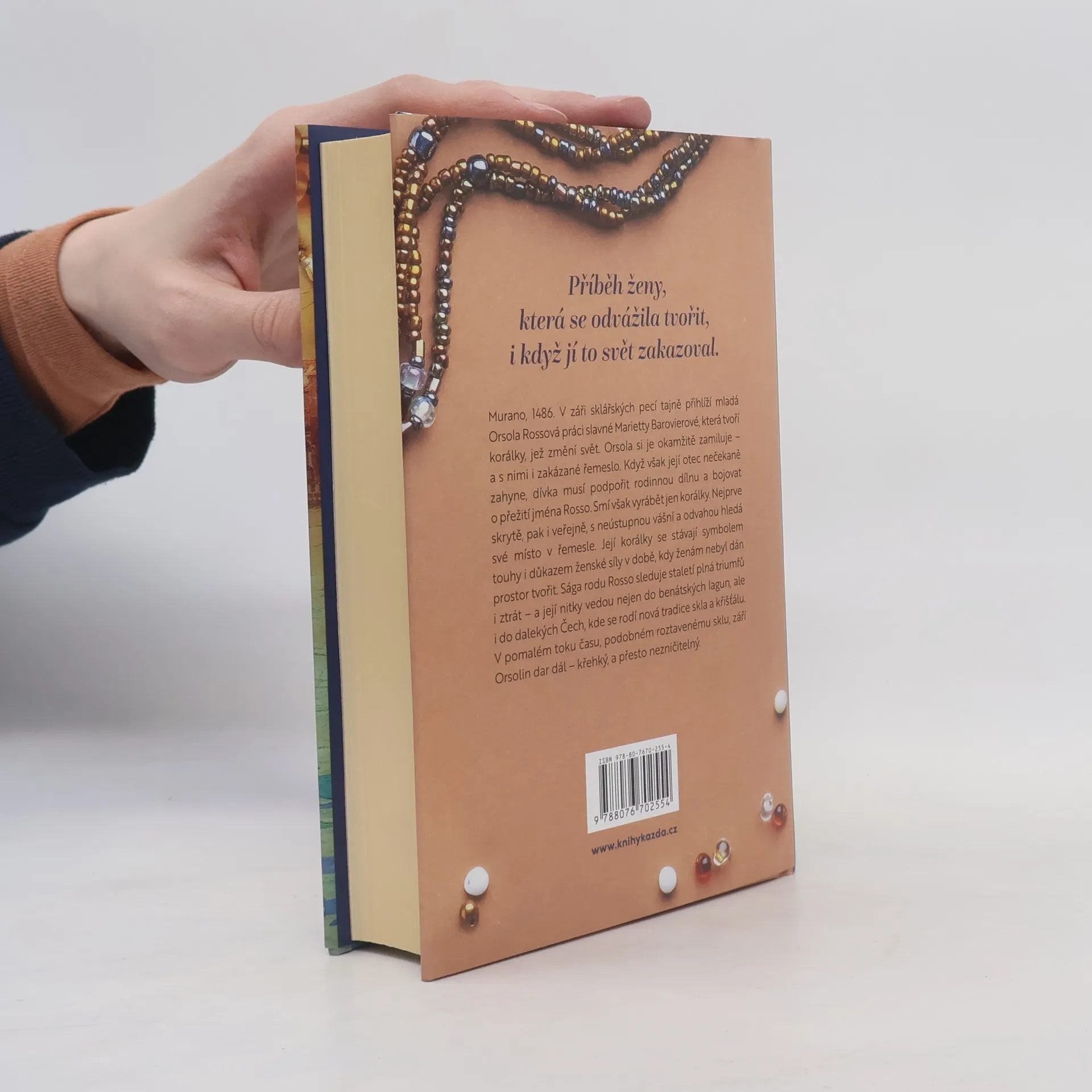Příběh ženy, která se odvážila tvořit, i když jí to svět zakazoval. Murano, 1486. V záři sklářských pecí tajně přihlíží mladá Orsola Rossová práci slavné Marietty Barovierové, která tvoří korálky, jež změní svět. Orsola si je okamžitě zamiluje – a s nimi i zakázané řemeslo. Když její otec nečekaně zahyne, musí podpořit rodinnou dílnu a bojovat o přežití jména Rosso. Nejprve skrytě, pak i veřejně, s neústupnou vášní hledá své místo ve sklářském řemesle. Její korálky se stávají symbolem touhy i důkazem ženské síly v době, kdy ženám nebyl dán prostor tvořit.