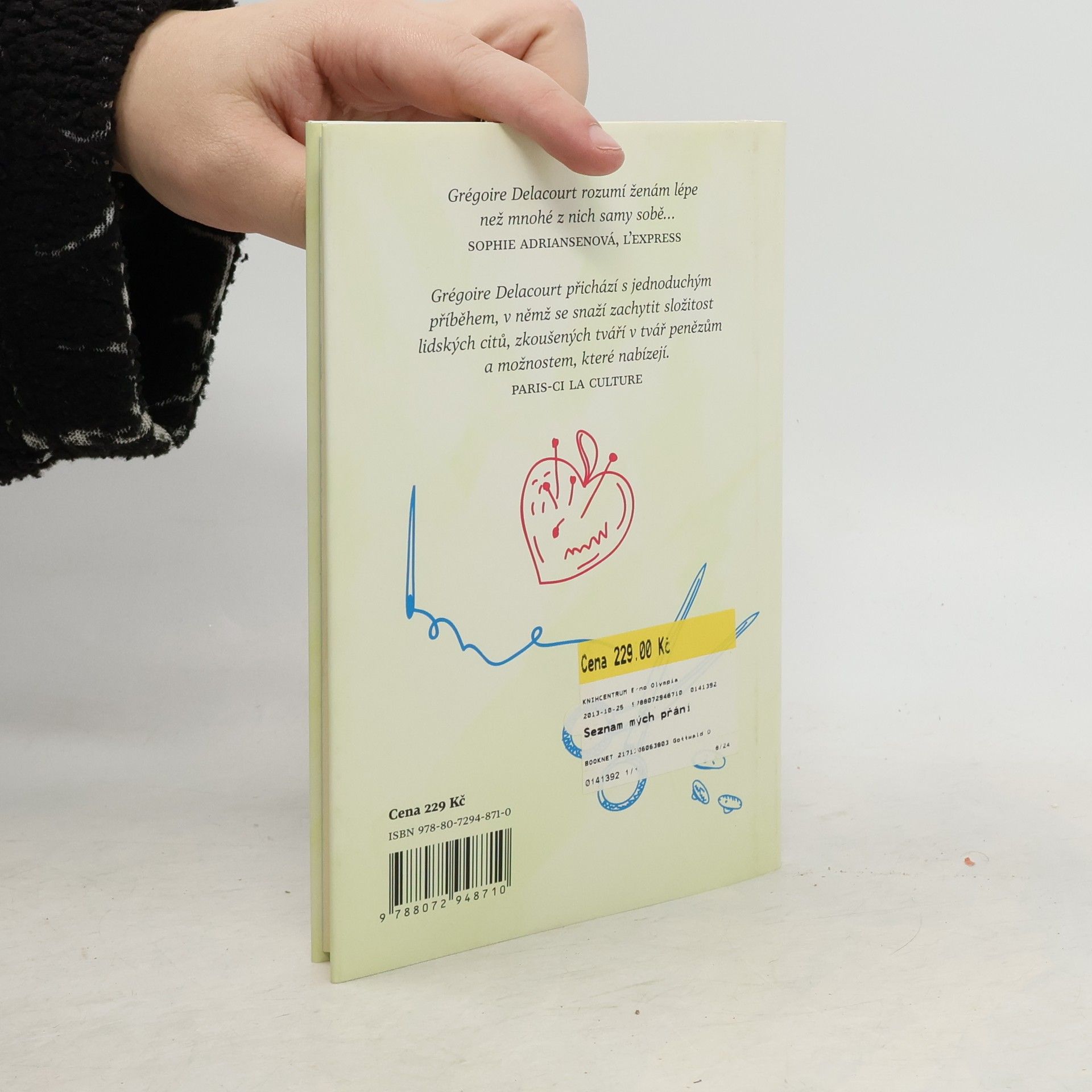 Ženy tyto věci vždy vycítí dopředu. Když Jocelyne Guerbettová, majitelka galanterie v Arrasu, zjistí, že si najednou může dopřát všechno, po čem touží, začne se ptát sama sebe, jestli tím mnohem víc neztratí. Jocelyne, řečená Jo, snila kdysi o tom, že bude módní návrhářkou v Paříži, jenže prodává v galanterii v Arrasu. Má ráda štíhlé siluety, ale přitom má do postavy manekýny daleko. Zbožňuje knihy a píše blog věnovaný krajkářství. Chybí jí matka a její nemocný otec ztrácí co chvíli ponětí o tom, kdo je. Čekala prince na bílém koni, ale přišel Jocelyn (Jo). Mají dvě děti, přišli o andílka Nadege a tento smutek mezi nimi vše pokazil. Jo (manžel) je krutý a Jo (manželka) chtěla utéct. Přesto zůstala. Její láska a trpělivost přetrvává navzdory jeho zlobě. Až do dne, kdy díky svým sousedkám, krásným dvojčatům, majitelkám salonu krásy, vyhraje 18 547 301 eur. Ten den toho vyhraje opravdu mnoho. Možná… Grégoire Delacourt odvíjí před našima očima bláznivý, oslnivý a silný příběh lásky a náhody, který nás přímo vyzývá, abychom se znovu zamysleli nad svým seznamem přání.