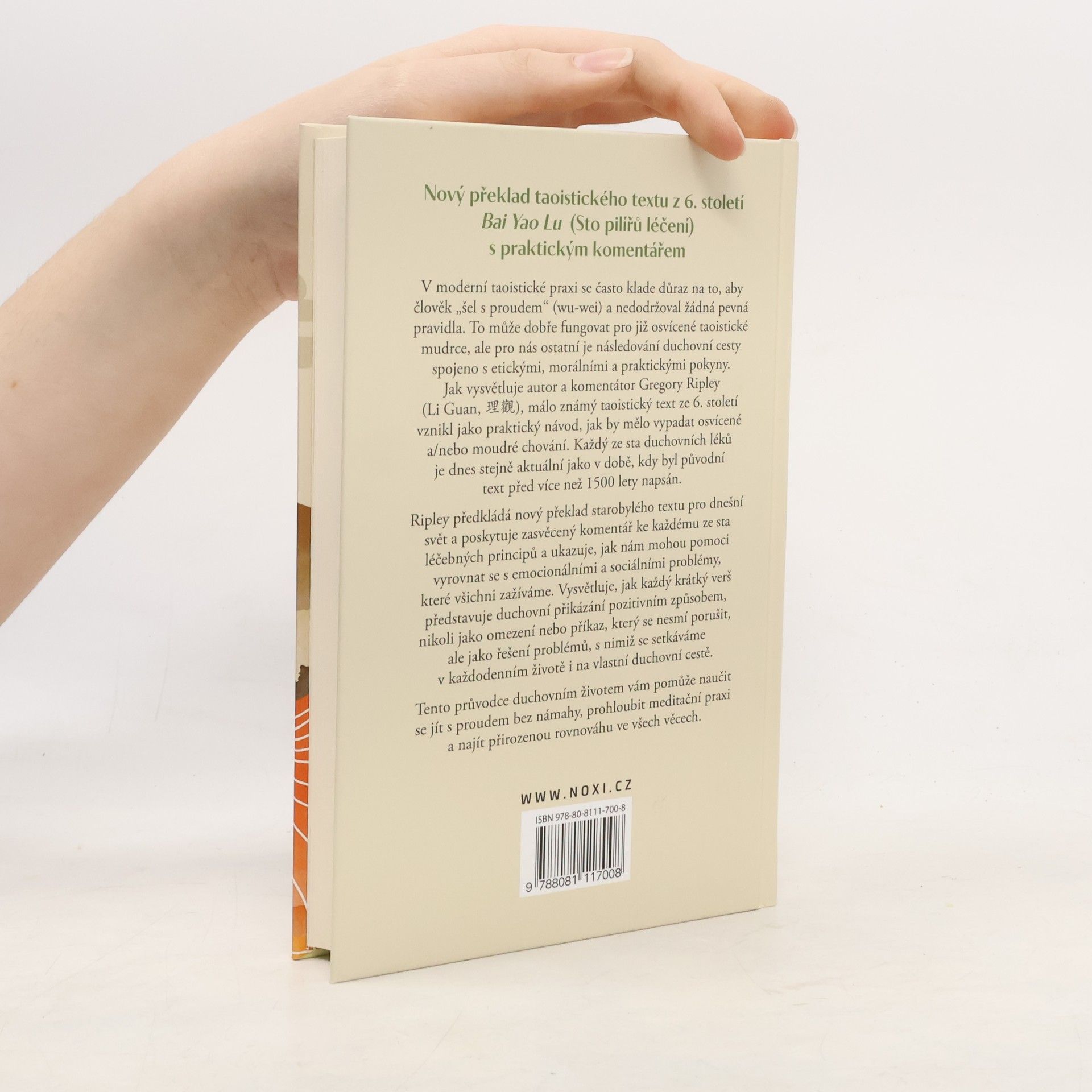 Tento průvodce duchovním životem vám pomůže naučit se jít s proudem bez námahy, prohloubit meditační praxi a najít přirozenou rovnováhu ve všech věcech. Nový překlad taoistického textu z 6. století Bai Yao Lu (Sto pilířů léčení) s praktickým komentářem. V moderní taoistické praxi se často klade důraz na to, aby člověk „šel s proudem“ (wu-wei) a nedodržoval žádná pevná pravidla. To může dobře fungovat pro již osvícené taoistické mudrce, ale pro nás ostatní je následování duchovní cesty spojeno s etickými, morálními a praktickými pokyny. Jak vysvětluje překladatel a komentátor Gregory Ripley, málo známý taoistický text ze 6. století vznikl jako praktický návod, jak by mělo vypadat osvícené a/nebo moudré chování. Každý ze sta duchovních léků je dnes stejně aktuální jako v době, kdy byl původní text před více než 1500 lety napsán. Ripley předkládá nový překlad starobylého textu pro dnešní svět a poskytuje zasvěcený komentář ke každému ze Sto léčebných principů a ukazuje, jak nám mohou pomoci vyrovnat se s emocionálními a sociálními problémy, které všichni zažíváme. Vysvětluje, jak každý krátký verš představuje duchovní přikázání pozitivním způsobem, nikoli jako omezení nebo příkaz, který se nesmí porušit, ale jako řešení problémů, s nimiž se setkáváme v každodenním životě i na vlastní duchovní cestě.