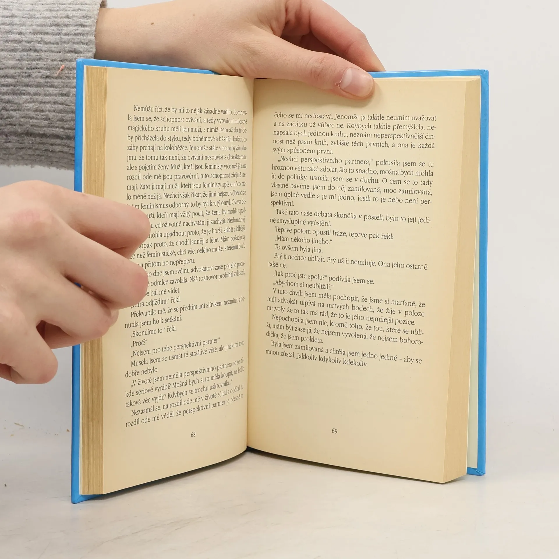 Hrdinka knihy se vyrovnává s vlastností kterou podle jejich zkušeností muži na ženách snášejí ze všeho nejhůř, s psaním knih. A rozhodne se, že se vyléčí psaním příručky. Jenomže výsledek je zdrcující. Její rady si buď vzájemně odporují, nebo jsou zcela nepřijatelné, není to žádná příručka, ale další román...Navíc román neposlušný, mluvící o věcech, které do románů nepatří, leda snad do nějakých příruček. Je to kniha o těch pravých (mužích), o ženství, o porodech, o mateřství, o dětech, o věčném strachu o ně, o mužském přirození, o lásce a o penězích. ... celý text