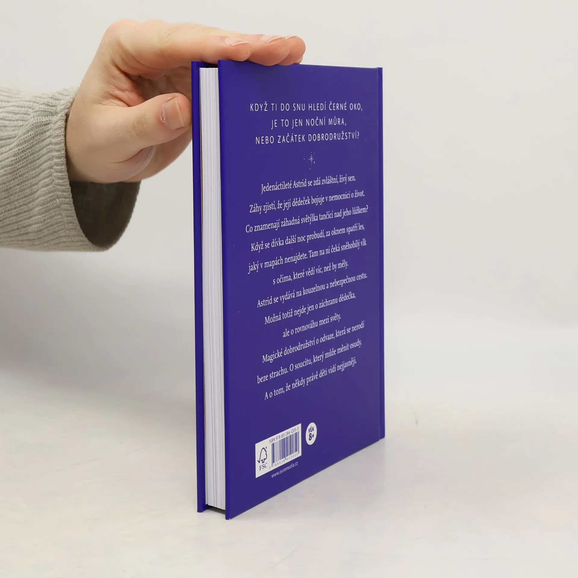 Když ti do snu hledí černé oko, je to jen noční můra, nebo začátek dobrodružství? Jedenáctileté Astrid se zdá zvláštní, živý sen. Záhy zjistí, že její dědeček bojuje v nemocnici o život. Co znamenají záhadná světýlka tančící nad jeho lůžkem? Když se dívka další noc probudí, za oknem spatří les, jaký v mapách nenajdete. Tam na ni čeká sněhobílý vlk s očima, které vědí víc, než by měly. Astrid se vydává na kouzelnou a nebezpečnou cestu. Možná totiž nejde jen o záchranu dědečka, ale o rovnováhu mezi světy. Magické dobrodružství o odvaze, která se nerodí beze strachu. O soucitu, který může měnit osudy. A o tom, že někdy právě děti vidí nejjasněji.