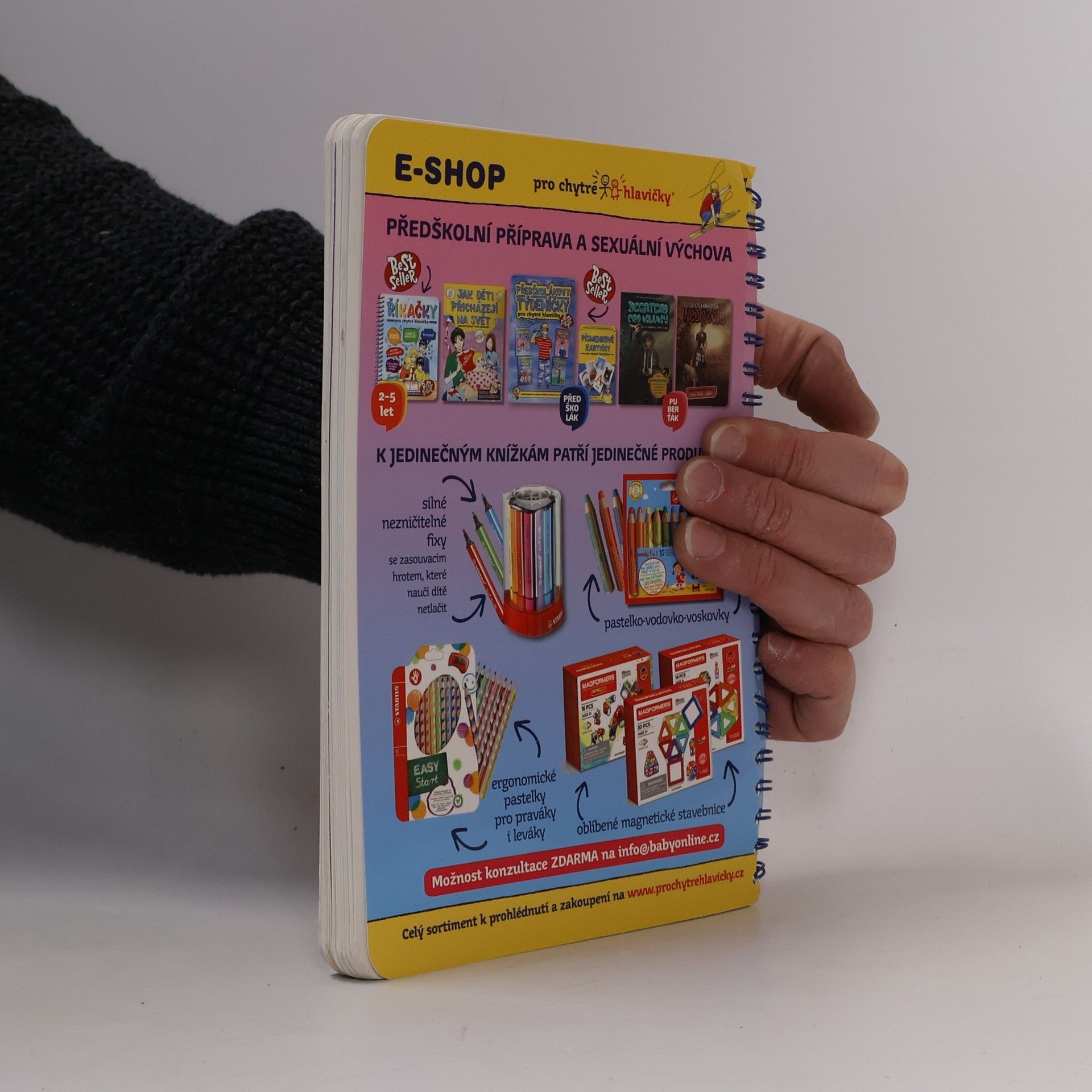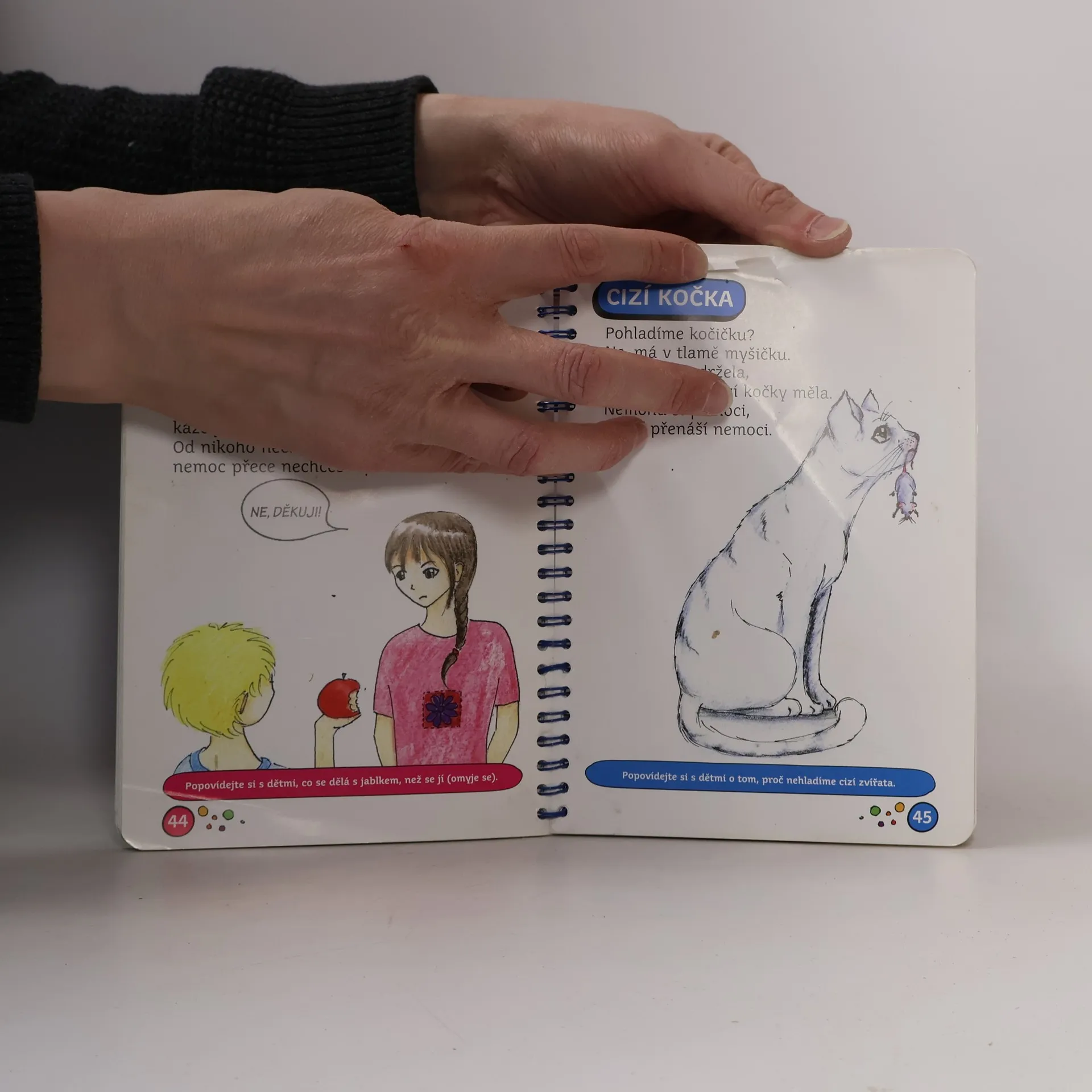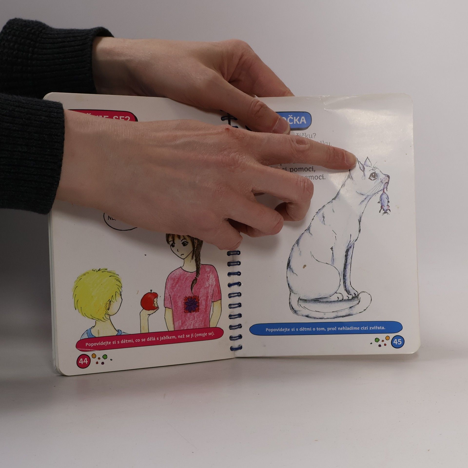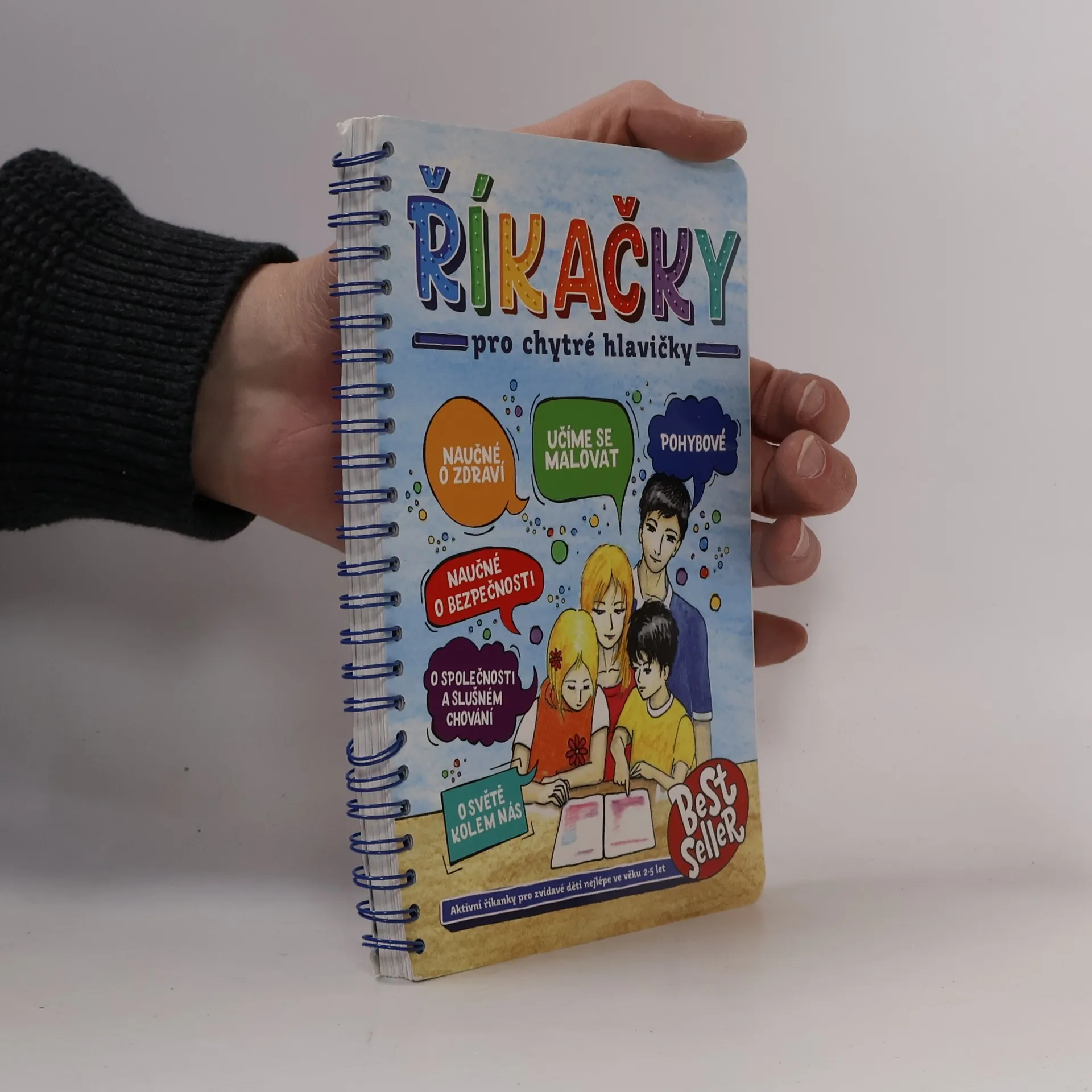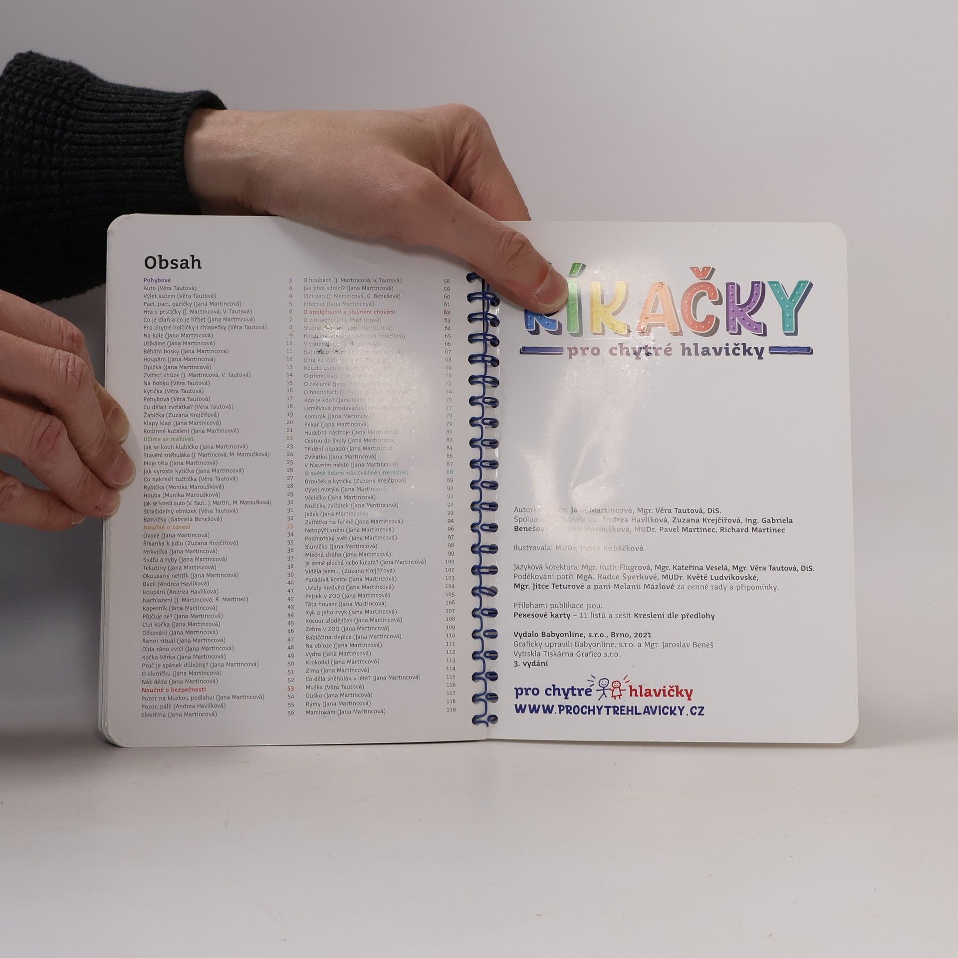 Interaktivní knížka říkanek pro děti od 0 do 8 let s dětmi cvičí, kreslí, učí je zdravému životnímu stylu, bezpečnému chování, o světě kolem nás. Knížka je praktická s kroužkovou vazbou. Komplet obsahuje hlavní publikaci, kreslení dle předlohy a 4 pexesové sady.