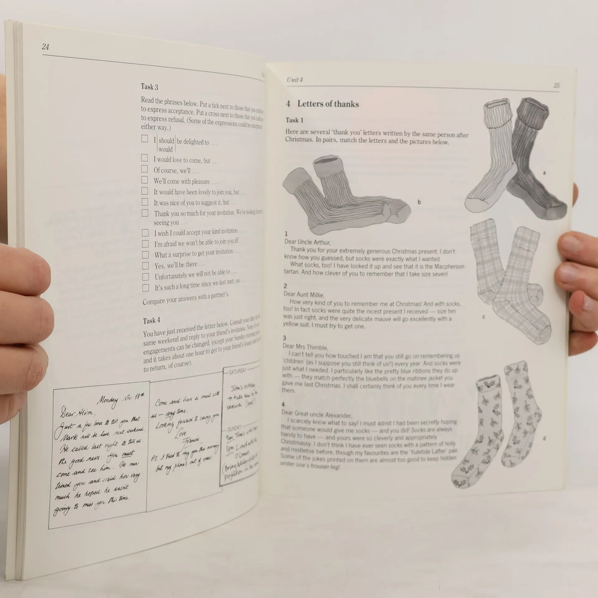 Different forms of written English - messages, diaries, letters, postcards & Notes. Units are arranged thematically.