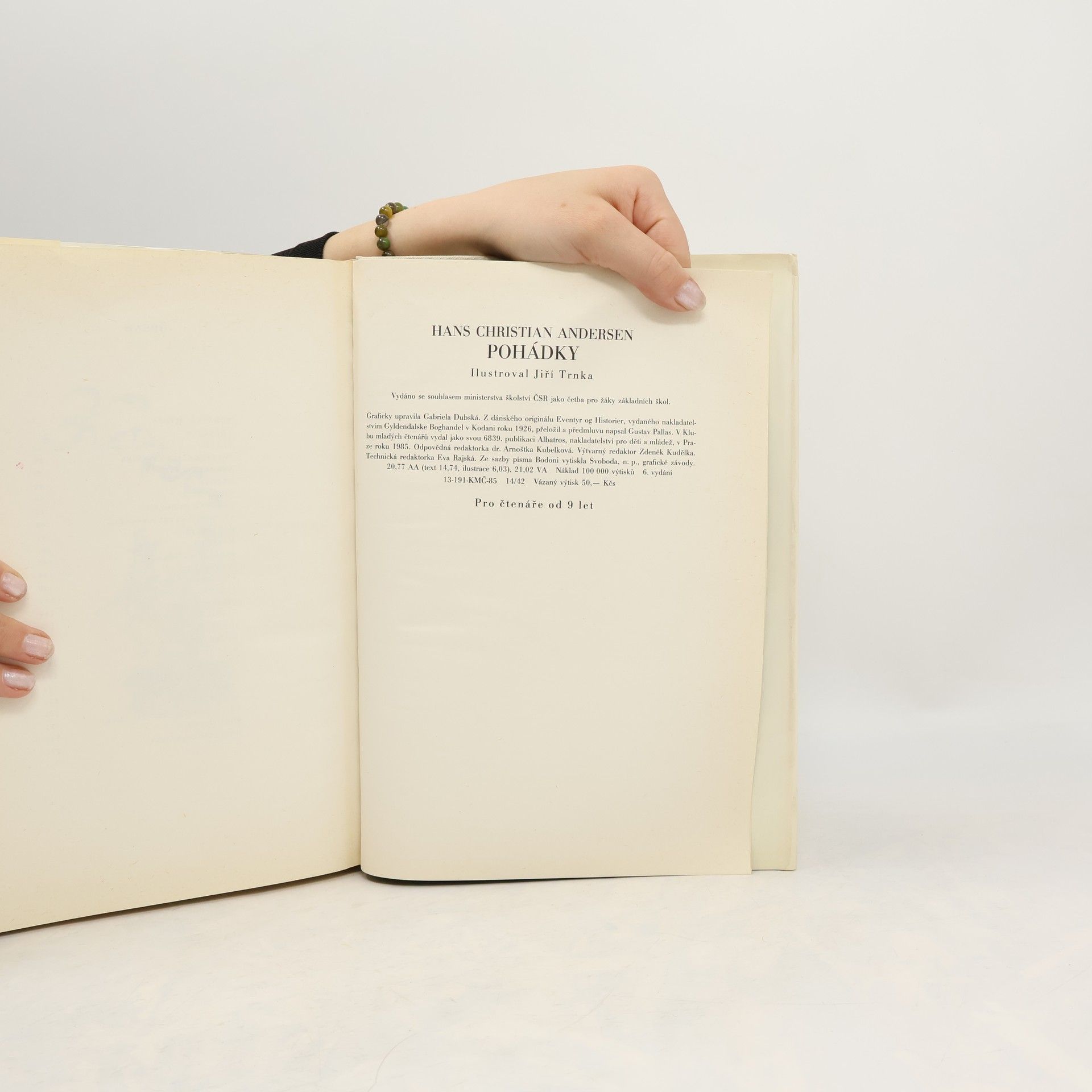 Obsahuje: Pohádka života, Křesadlo, Slavík, Pastýřka a kominíček, Sněhová královna, Smrček, Starý dům, Čarovná truhlice, Statečný cínový vojáček, Dva přátelé, Malenka, Bezová matička, Divoké labutě, Sviňáček, Šťastná rodinka, Císařovy nové šaty, Ropucha, Uspávač, Mořská ženka, Hloupý Honza, O princezně na hrášku, Ošklivé káčátko, Stříbrňák, Kdo skočí nejvýš, Pět hrášků v jednom lusku, Pokladnička, Helenčiny květiny. s ilustrovaným doprovodem Jiřího Trnky z roku 1963, pro Klub mladých čtenářů