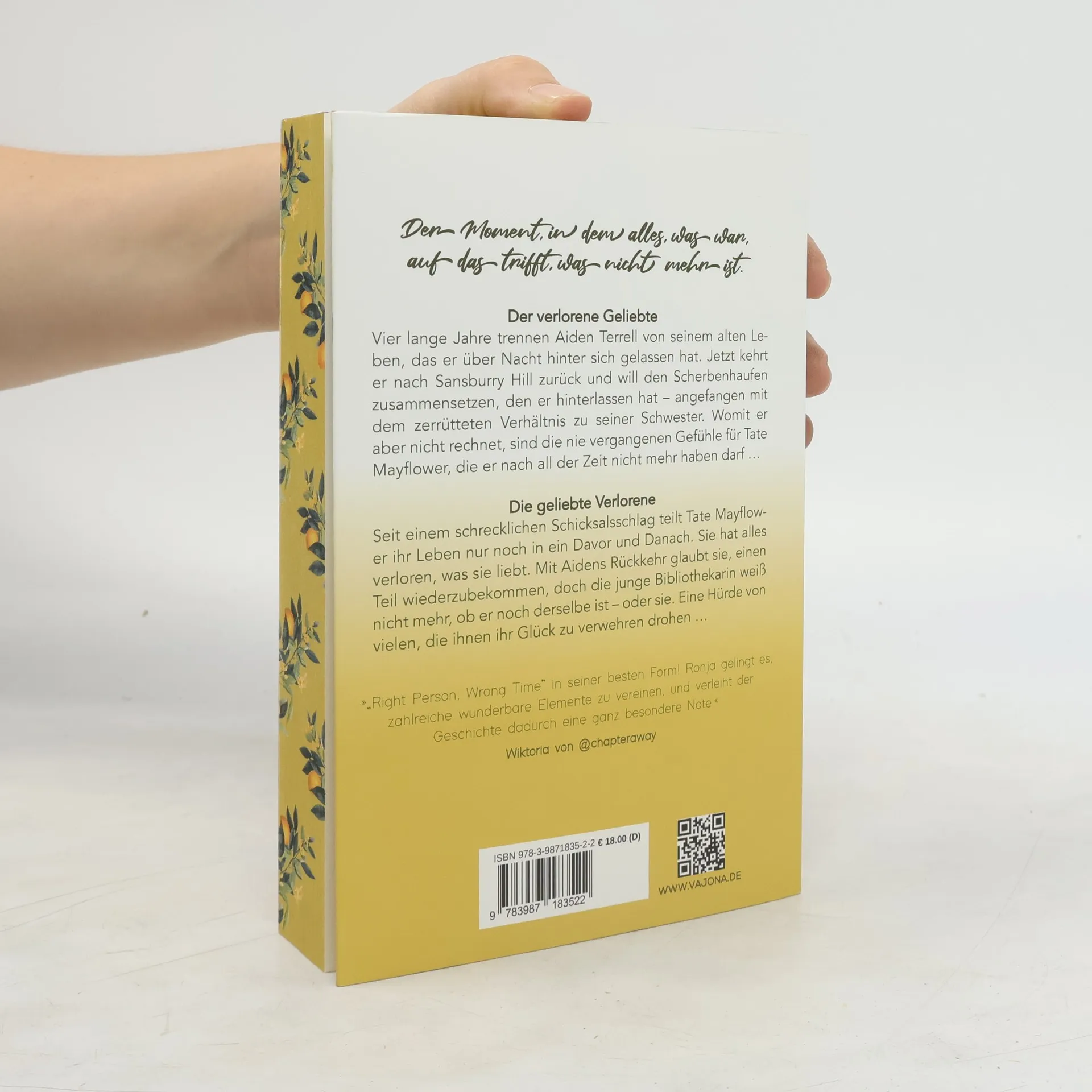 »Der Moment, in dem alles, was war, auf das trifft, was nicht mehr ist.« Der verlorene Geliebte Vier lange Jahre trennen Aiden Terrell von seinem alten Leben, das er über Nacht hinter sich gelassen hat. Jetzt kehrt er nach Sansburry Hill zurück und will den Scherbenhaufen zusammensetzen, den er hinterlassen hat – angefangen mit dem zerrütteten Verhältnis zu seiner Schwester. Womit er aber nicht rechnet, sind die nie vergangenen Gefühle für Tate Mayflower, die er nach all der Zeit nicht mehr haben darf … Die geliebte Verlorene Seit einem schrecklichen Schicksalsschlag teilt Tate Mayflower ihr Leben nur noch in ein Davor und Danach. Sie hat alles verloren, was sie liebt. Mit Aidens Rückkehr glaubt sie, einen Teil wiederzubekommen, doch die junge Bibliothekarin weiß nicht mehr, ob er noch derselbe ist – oder sie. Eine Hürde von vielen, die ihnen ihr Glück zu verwehren drohen …
