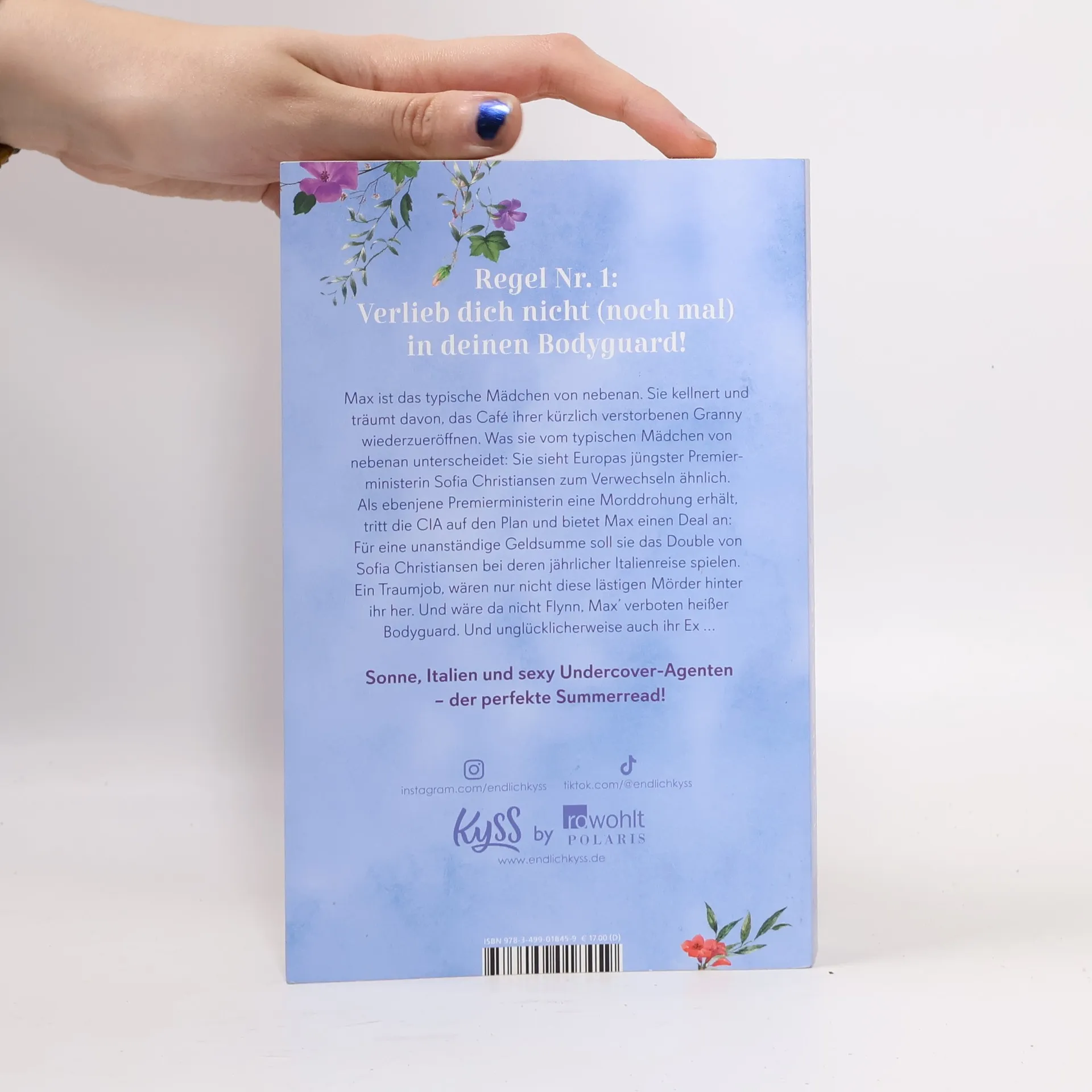 Regel Nr. 1: Verlieb dich nicht (noch mal) in deinen Bodyguard! Sonne, Italien und sexy Undercover-Agenten – die perfekte Romance-Lektüre für den Sommer. Eigentlich ist Max das typische Mädchen von nebenan. Sie kellnert und träumt davon, das Café ihrer heißgeliebten, kürzlich verstorbenen Granny wiederzueröffnen. Was sie vom typischen Mädchen von nebenan unterscheidet: Sie sieht Europas jüngster Premierministerin Sofia Christensen zum Verwechseln ähnlich … Als ebenjene Premierministerin eine glaubwürdige Morddrohung erhält, tritt die CIA auf den Plan und bietet Max einen Deal an: für eine unanständige Geldsumme soll sie das Double von Sofia Christensen bei deren jährlicher Italienreise spielen. Ein Traumjob, wären nur nicht diese lästigen Mörder hinter ihr her. Und wäre da nicht Flynn, Max’ verboten heißer Bodyguard. Und unglücklicherweise auch ihr Ex …