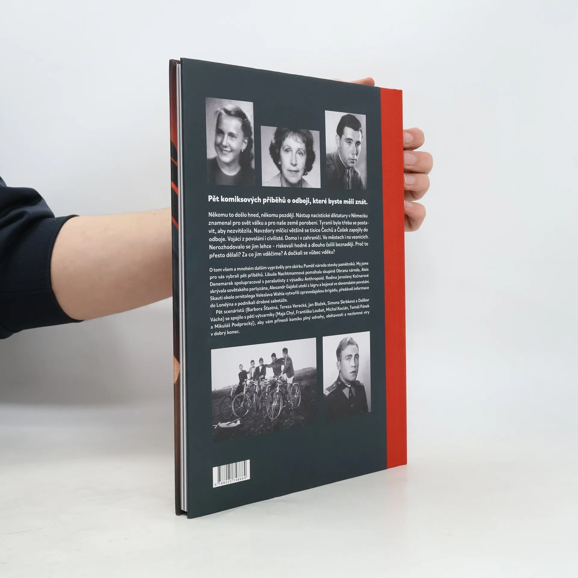 Pět komiksových příběhů o odboji, které byste měli znát. Někomu to došlo hned, někomu později. Nástup nacistické diktatury v Německu znamenal pro svět válku a pro naše země porobení. Tyranii bylo potřeba se postavit, aby nezvítězila. Navzdory mlčící většině se tisíce Čechů a Češek zapojily do odboje. Vojáci z povolání i civilisté. Doma i v zahraničí. Ve městech i na vesnicích. Nerozhodovalo se jim lehce – riskovali hodně a dlouho čelili beznaději. Proč to přesto dělali? Za co jim vděčíme? A dočkali se vůbec vděku? O tom všem a mnohém dalším vyprávěly pro sbírku Paměť národa stovky pamětníků. My jsme pro vás vybrali pět příběhů. Libuše Nachtmannová pomáhala skupině Obrana národa, Alois Denemarek spolupracoval s parašutisty z výsadku Anthropoid. Rodina Jaroslavy Kočnarové skrývala sovětského partyzána, Alexandr Gajdoš utekl z lágru a bojoval ve slovenském povstání. Skauti okolo ornitologa Veleslava Wahla vytvořili zpravodajskou brigádu, předávali informace do Londýna a podnikali drobné sabotáže. Pět scenáristů (Barbora Šťastná, Tereza Verecká, Jan Blažek, Mikuláš Kroupa a Dalibor Vácha) se spojilo s pěti výtvarníky (Františka Loubat, Maja Steinbauerová, Michal Kocián, Tomáš Pánek a Mikuláš Podprocký), aby vám přinesli komiks plný odvahy, obětavosti a nezlomné víry v dobrý konec.