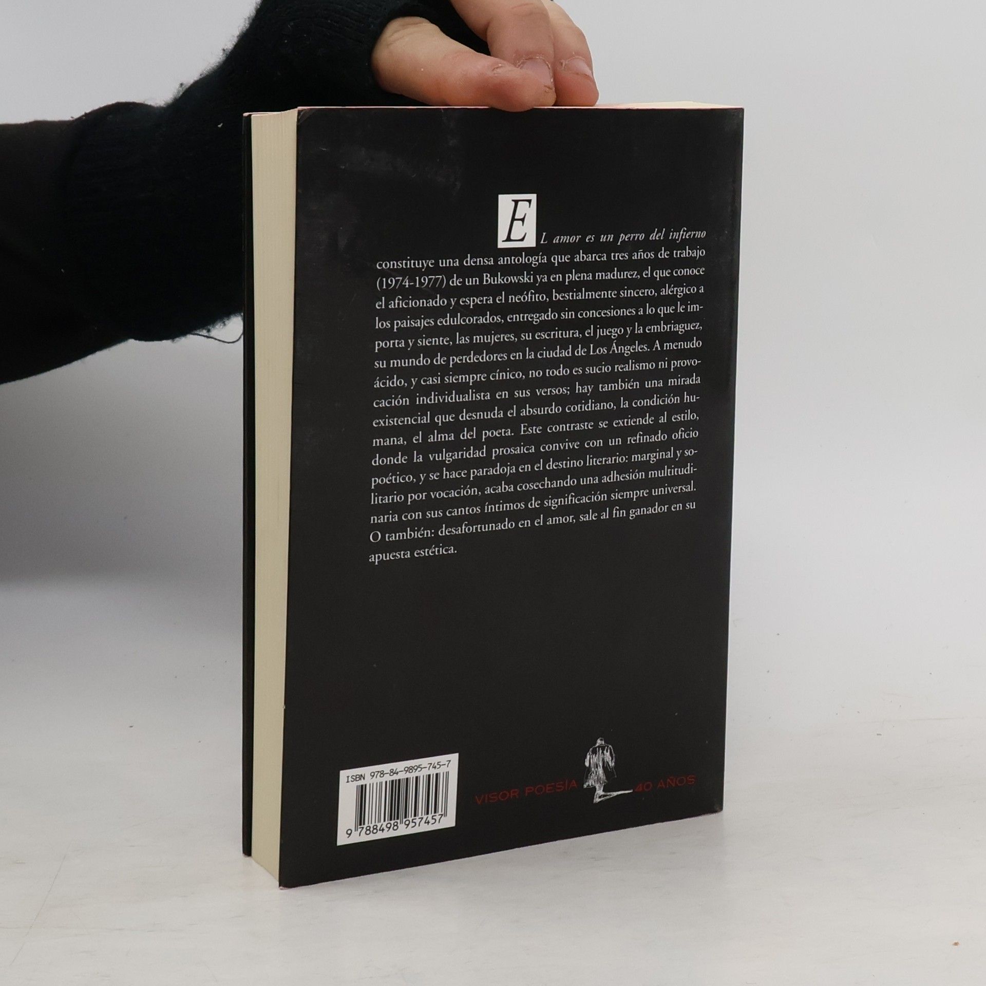 EL amor es un perro del infierno constituye una densa antología que abarca tres años de trabajo (1974-1977) de un Bukowski ya en plena madurez, el que conoce el aficionado y espera el neófito, bestialmente sincero, alérgico a los paisajes edulcorados, entregado sin concesiones a lo que le importa y siente, las mujeres, su escritura, el juego y la embriaguez, su mundo de perdedores en la ciudad de Los Ángeles. A menudo ácido, y casi siempre cínico, no todo es sucio realismo ni provocación individualista en sus versos; hay también una mirada existencial que desnuda el absurdo cotidiano, la condición humana, el alma del poeta. Este contraste se extiende al estilo, donde la vulgaridad prosaica convive con un refinado oficio poético, y se hace paradoja en el destino literario: marginal y solitario por vocación, acaba cosechando una adhesión multitudinaria con sus cantos íntimos de significación siempre universal. O también: desafortunado en el amor, sale al fin ganador en su opuesta estética.