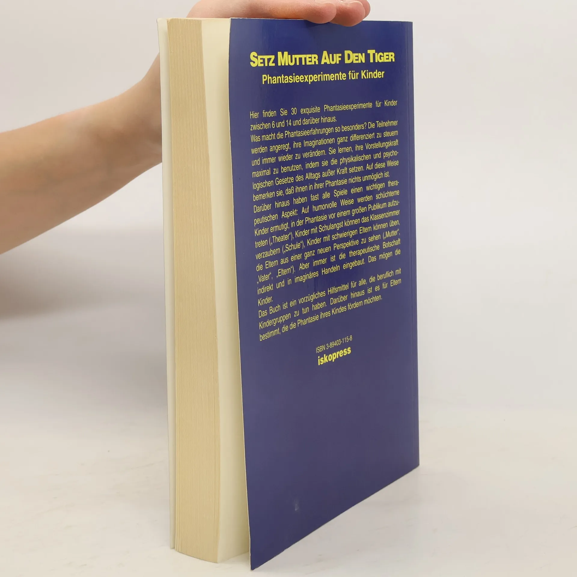Hier finden Sie 30 exquisite Phantasieexperimente für Kinder zwischen 6 und 14 Jahren und darüber hinaus. Was macht diese Phantasieerfahrungen so besonders? Die Teilnehmer werden angeregt, ihre Imaginationen ganz differenziert zu steuern und immer wieder zu verändern. Sie lernen, ihre Vorstellungskraft zu erweitern, indem sie die physikalischen Gesetze außer Kraft setzen. Auf diese Weise bemerken sie, daß ihnen in ihrer Phantasie nichts unmöglich ist. Das Buch ist ein vorzügliches Hilfsmittel für alle, die beruflich mit Kindergruppen zu tun haben, darüber hinaus ist es für Eltern bestimmt, die die Phantasie ihrer Kinder fördern möchten.