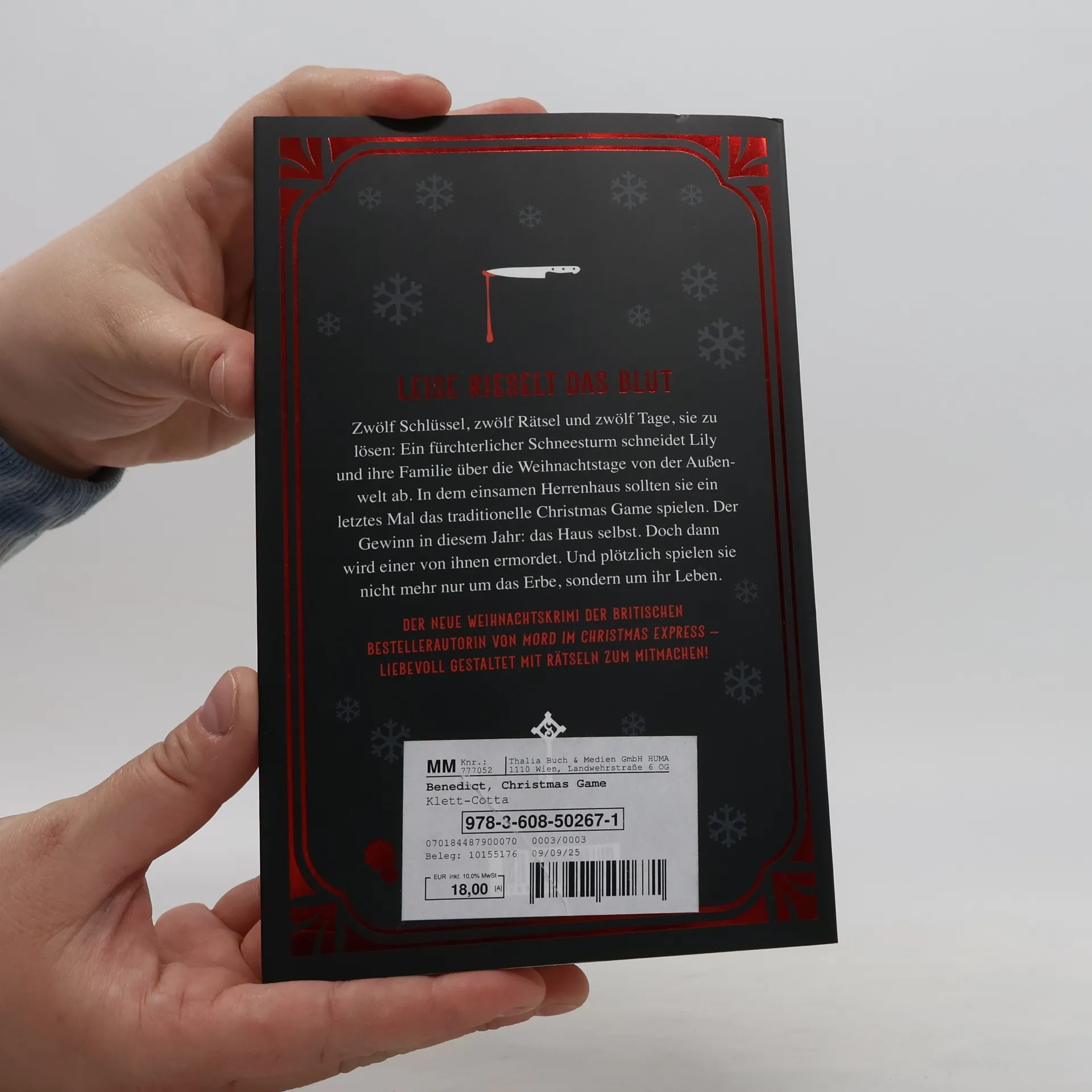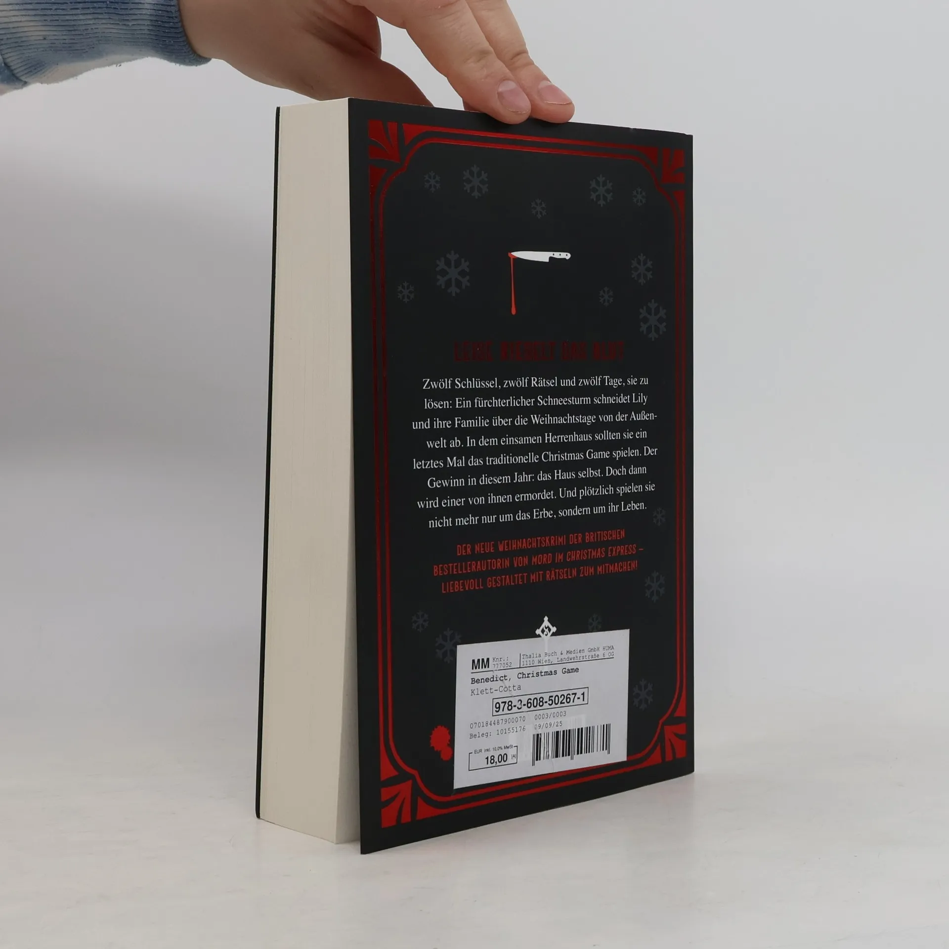 Ein weihnachtlich verschneites Herrenhaus und ein Spiel um Leben und Tod Zwölf Schlüssel, zwölf Rätsel und zwölf Tage, sie zu lösen: In dem prachtvollen Herrenhaus von Lilys Tante wird ein letztes Mal das traditionelle Christmas Game gespielt. Der Gewinn in diesem Jahr: das Landhaus. Doch dann wird einer von ihnen ermordet. Und plötzlich spielen sie nicht mehr nur um das Erbe, sondern um ihr Leben. Der neue Weihnachtskrimi von Alexandra Benedict: ein perfekt komponierter Locked-Room-Krimi, tödlicher als je zuvor. Heiligabend. Widerwillig macht sich Lucy auf den Weg zum abgelegenen Familiensitz in Yorkshire. Sie hatte sich geschworen, niemals dorthin zurückzukehren. Denn in diesem Haus starb unter ungeklärten Umständen ihre Mutter. Doch nun ist auch ihre geliebte Tante gestorben. Ihr letzter Wunsch: Die ganze Familie soll noch ein letztes Mal das traditionelle Christmas Game spielen. Zu gewinnen gibt es nicht nur die Besitzurkunde des Herrenhauses. Auch das Geheimnis um den Tod von Lucys Mutter soll endlich gelüftet werden. Schnell wird allerdings klar, dass alle ihre eigenen Gründe haben, das Spiel zu gewinnen – und nicht alle spielen fair. Als ein fürchterlicher Schneesturm sie von der Außenwelt abschneidet, wird das Spiel tödlich. Wird Lucy am Ende gewinnen – oder selbst zur Spielfigur eines mörderischen Plans?