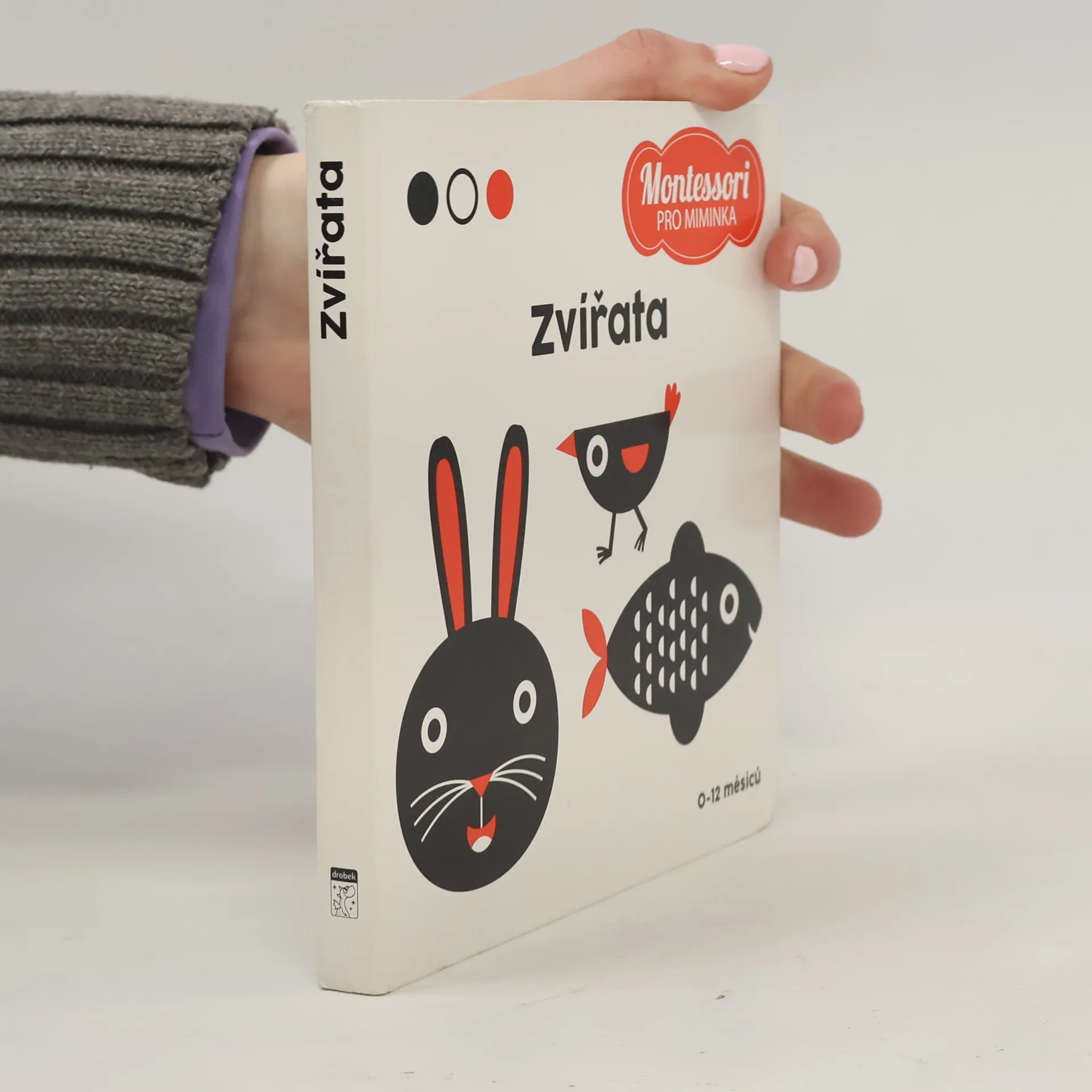 Je tolik zvířat, s nimiž se můžeme seznámit! Pojďme je společně objevit na stránkách této knihy inspirované metodou Marie Montessori. Vaše dítě si může prohlížet černobílé obrázky, objevovat malé červené detaily a začít prozkoumávat svět. Vhodné pro děti ve věku 0 až 12 měsíců.