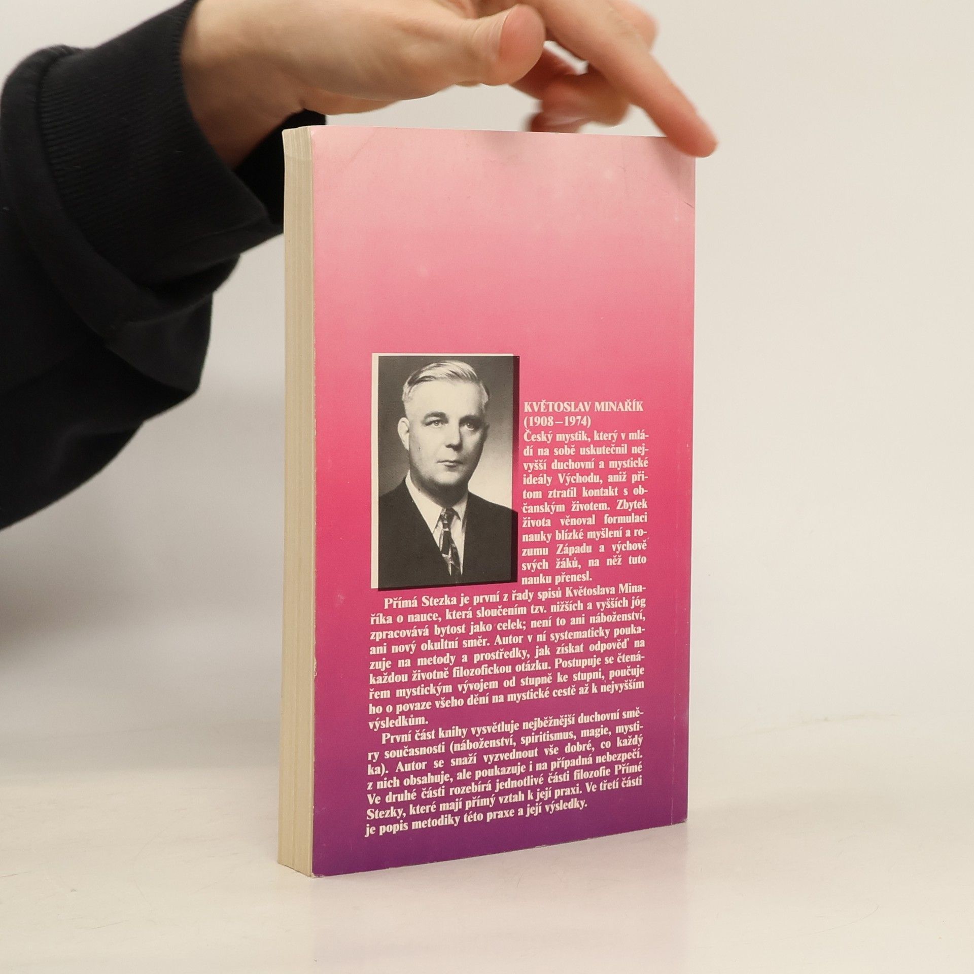 Tato kniha uvádí čtenáře do duchovního života na základě životních zkušeností. Přímá Stezka se nazývá proto, že učí své čtenáře jak se vyhnout oklikám na cestě k dokonalosti a dosáhnout cíle přímo. Květoslav Minařík systematicky poukazuje na metody a prostředky jak získat odpověď na každou životně filozofickou otázku. Postupuje mystickým vývojem od stupně ke stupni, poučuje o povaze všeho dění na mystické cestě až k nejvyšším výsledkům. První část se zabývá náboženstvím, spiritismem, magií a mystikou; poukazuje na nesrovnalosti nebo nebezpečí s nimi spojená, vyzvedává však i vše dobré, co která z těchto nauk obsahuje. Druhá část knihy rozebírá různé aspekty spojené s filozofií a praxí Přímé Stezky (např. Bůh, modlitba, znovuvtělování, nelpění, džňánajóga). Třetí část popisuje metodiku praxe Přímé Stezky z různých hledisek (např. absolutní nezbytnost dodržování morálních předpisů, postup prostřednictvím karmajógy a bhaktijógy při začlenění do povinností každodenního života, koncentrace aj.). V krátké době rozebrané druhé vydání Přímé Stezky svědčí o tom, že se autorovi zdařil záměr, o němž hovoří v předmluvě k druhému vydání: volat ty, kdo hledají na mystických cestách. V tomto třetím vydání byly opět doplněny partie týkající se českých mystických škol, které byly v druhém (zahraničním) vydání vynechány.