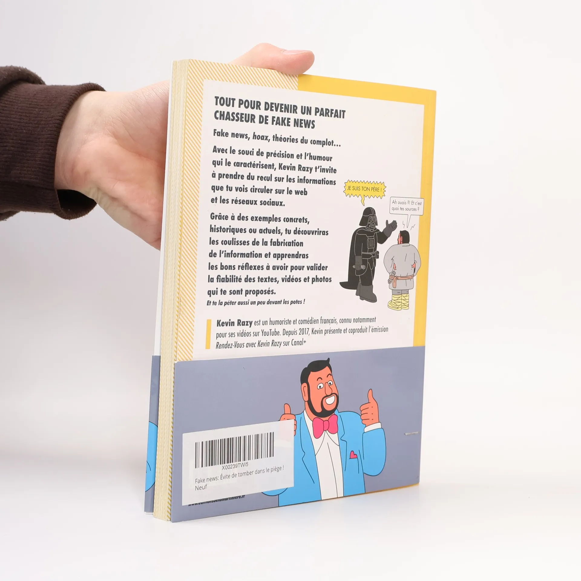 Fake news, hoax, théories du complot... Avec le souci de précision et l'humour qui le caractérisent, Kevin Razy t'invite à prendre du recul sur les informations que tu vois circuler sur le web et les réseaux sociaux. Via des exemples concrets, historiques ou actuels, tu découvriras les coulisses de la fabrication de l'information et apprendras les bons réflexes à avoir pour valider la fiabilité des contenus (textes, vidéos, photos) qui te sont proposés, et te la péter aussi un peu devant les potes !
