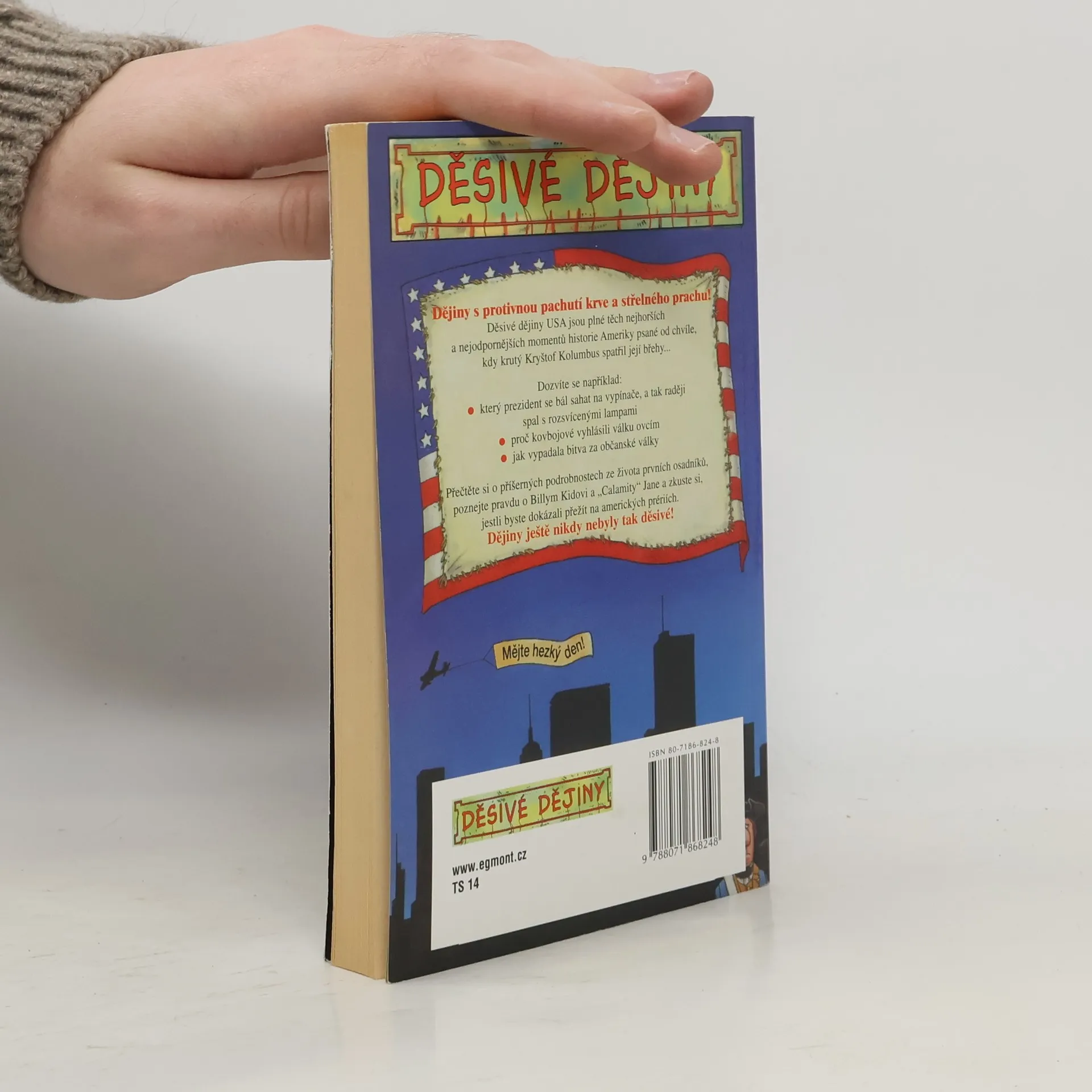 Dějiny s protivnou pachutí krve a střelného prachu! Děsivé dějiny USA jsou plné těch nejhorších a nejodpornějších momentů historie Ameriky psané od chvíle, kdy krutý Kryštof Kolumbus spatřil její břehy... Dozvíte se například: - který prezident se bál sahat na vypínače, a tak raději spal s rozsvícenými lampami, - proč kovbojové vyhlásili válku ovcím, - jak vypadala bitva za občanské války. Přečtěte si o příšerných podrobnostech ze života prvních osadníků, poznejte pravdu o Billym Kidovi a Calamity Jane a zkuste si, jestli byste dokázali přežít na amerických prériích. Dějiny ještě nikdy nebyly tak děsivé!!!