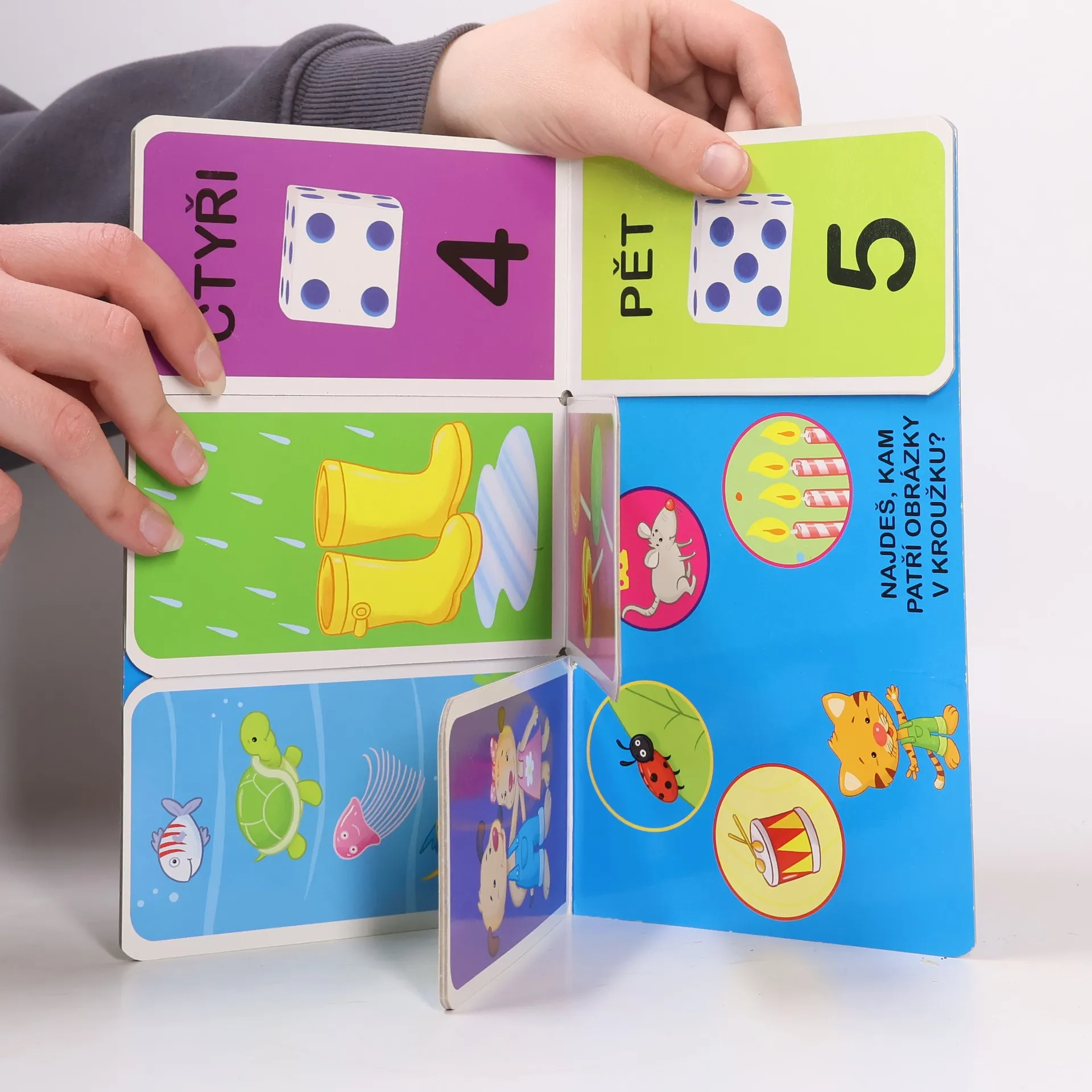 Díky této knížce se malí neposedové naučí interaktivní formou počítat do šesti a zažijí spoustu legrace. Tato leporelová knížka je vhodná pro rozvíjení logického myšlení u dětí mladšího předškolního věku.