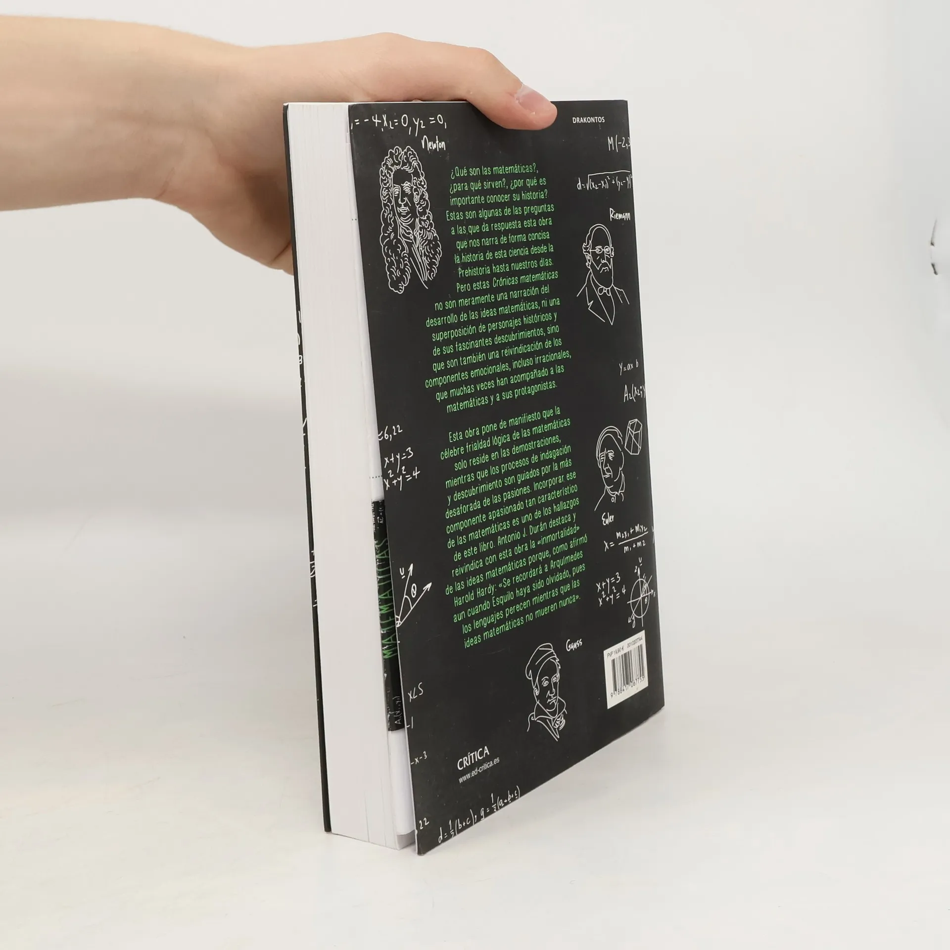 ¿Qué son las matemáticas? ¿Para qué sirven? ¿Por qué es importante conocer su historia? Estas son algunas de las preguntas a las que da respuesta esta obra que nos narra de forma concisa la historia de esta ciencia desde la Prehistoria hasta nuestros días. Pero esta narración no es solamente una superposición de personajes históricos y de sus felices descubrimientos, sino que es una reivindicación de los componentes emocionales, incluso irracionales, que muchas veces han acompañado las actitudes apasionadas de estos célebres personajes que se han empeñado en buscar soluciones a los más diversos problemas. Antonio J. Durán destaca y reivindica con este libro la «inmortalidad» de las ideas matemáticas por encima de otro tipo de lenguajes: «se recordará a Arquímedes aun cuando Esquilo haya sido olvidado, pues los lenguajes perecen mientras que las ideas matemáticas no mueren nunca».
