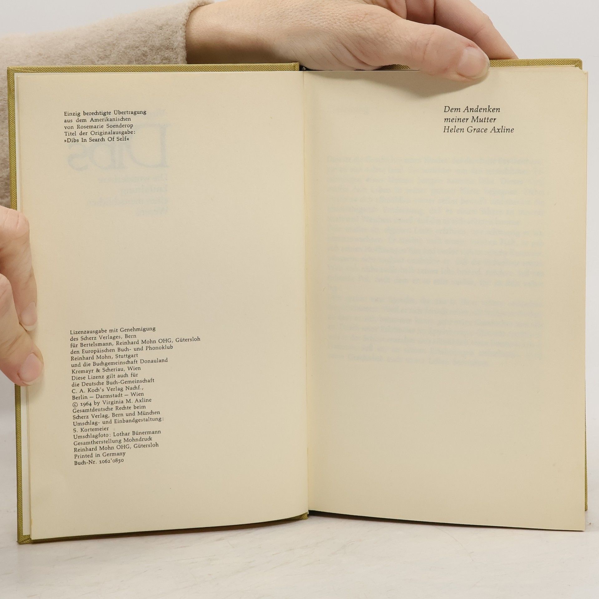 Eingesperrt in sein seelisches Gefängnis, spricht, lacht und spielt Dibs nicht bis zu seinem fünften Lebensjahr. Doch mit sechs Jahren ist er mit einem Mal aufgeweckt und lebensfroh. Dieses Wunder vollbrachte Virginia Axline, die das Vertrauen des autistischen Jungen gewann und ihm half, seine inneren Barrieren zu überwinden.»Es ist nahezu unmöglich, Dibs aus der Hand zu legen, ehe man diese packende Geschichte zu Ende erlebt hat. Sie ist eine leise Liebesgeschichte voller Menschlichkeit.« Die Zeit
