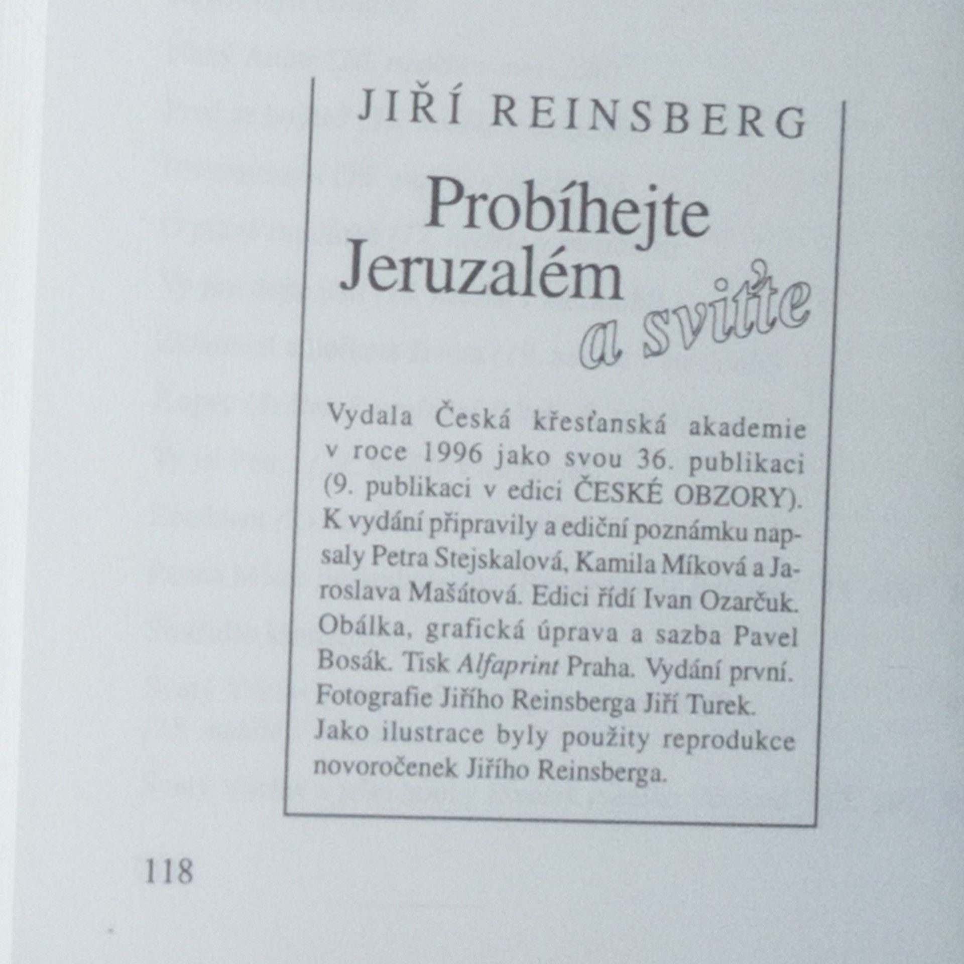 Probíhejte Jeruzalém a sviťte, Jiří Reinsberg