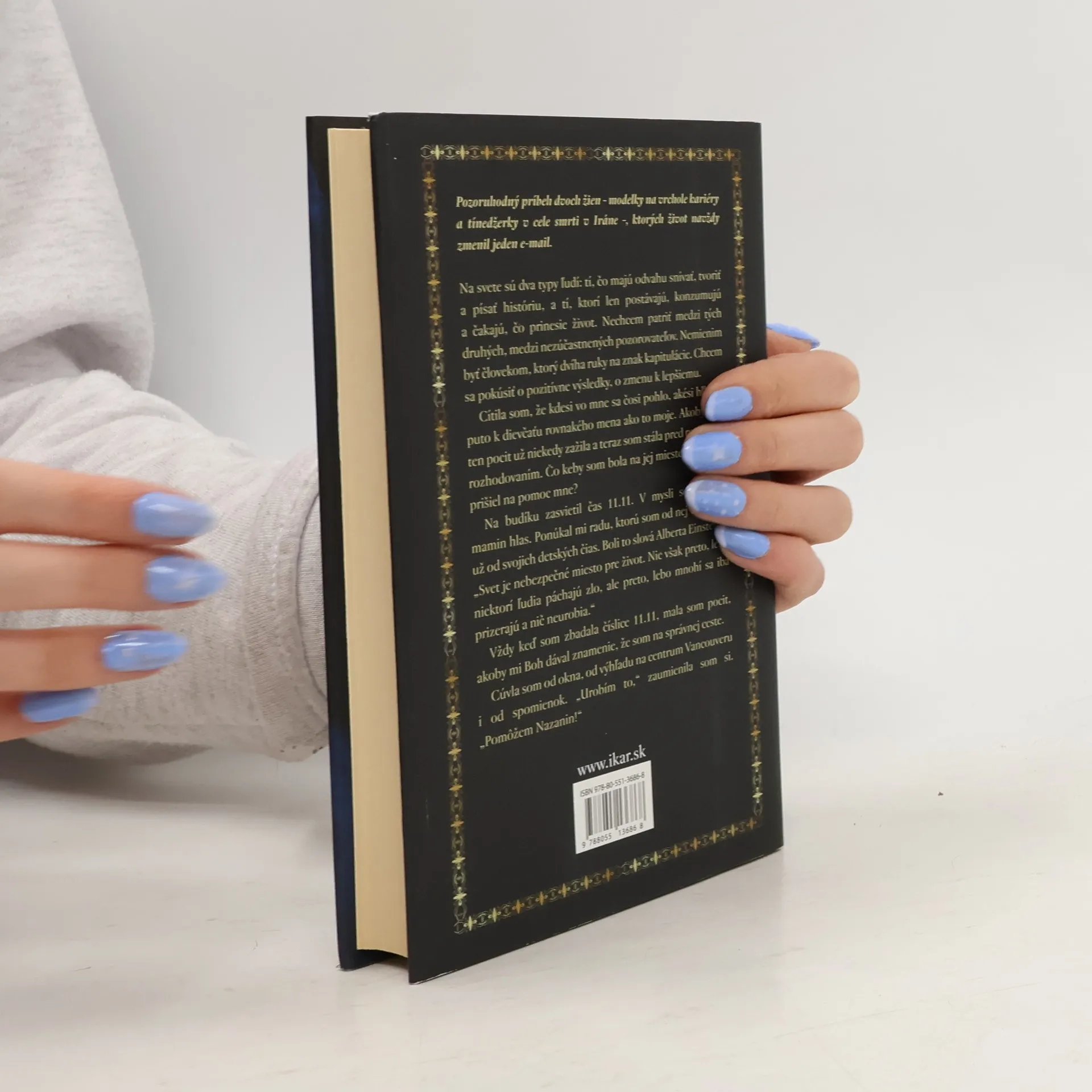 Pozoruhodný príbeh dvoch žien – modelky na vrchole kariéry a tínedžerky v cele smrti v Iráne –, ktorých život navždy zmenil jeden e-mail. Obe ženy majú zhodou okolností rovnaké krstné meno Nazanin. Nazanin Afshin-Jamová bola na výslní svojej kariéry. No v jedno popoludnie dostane e-mail, ktorý zmení jej životnú dráhu. Dozvie sa z neho o istom kurdskom dievčati – Nazanin Fatehiovej –, ktorá čelí trestu smrti v Iráne za prebodnutie muža, ktorý sa ju pokúsil znásilniť. Nazanin Afshin-Jamová sa jej pohotovo zastane. Vkročí do sveta medzinárodnej diplomacie, kde spoznáva temné stránky krajiny, v ktorej sa narodila: vraždy zo cti, násilie voči ženám a štátom schválené popravy detí. Zatiaľ čo Fatehiová živorí vo väzení v takých katastrofálnych podmienkach, že si chce siahnuť na život, Afshin-Jamová horúčkovito pracuje na kampani na jej záchranu. Takto osud spojí životy dvoch žien – jednej, ktorá má všetky možnosti, a druhej, ktorá žije v najhlbšej chudobe – v boji za spravodlivosť. Tento výnimočný a inšpirujúci príbeh o solidarite medzi ženami hovorí o sile a schopnosti každého človeka podporiť pozitívne zmeny vo svete.