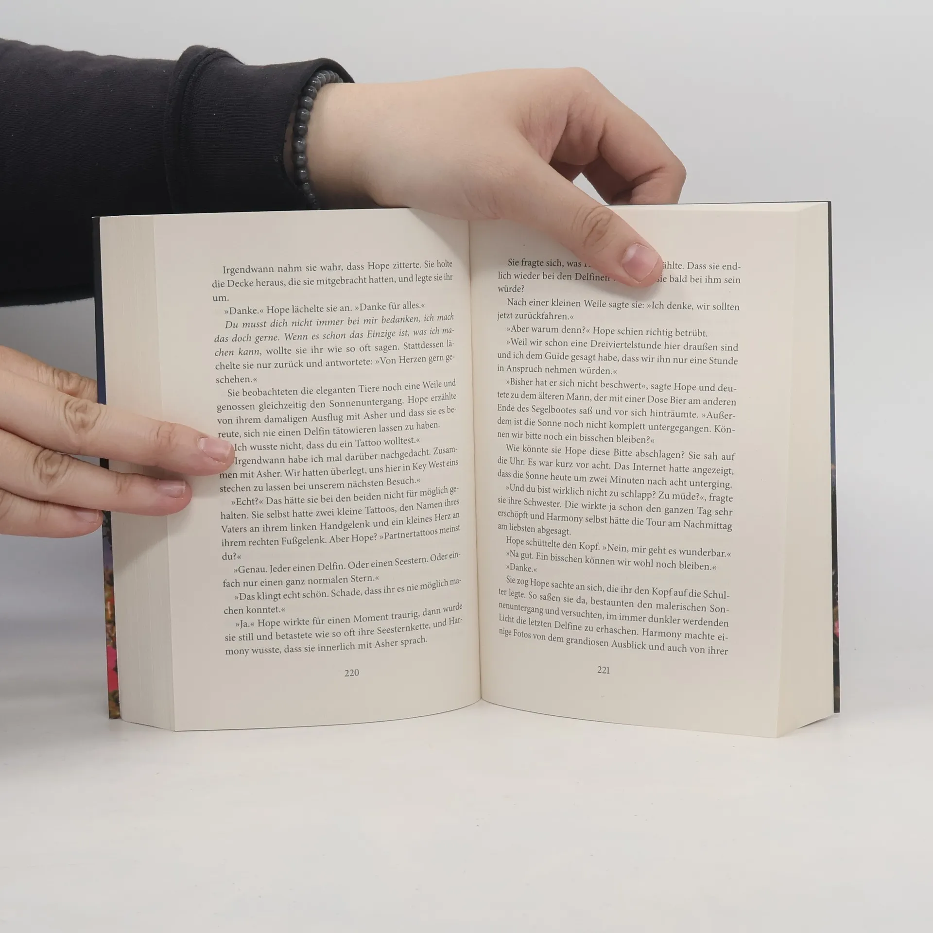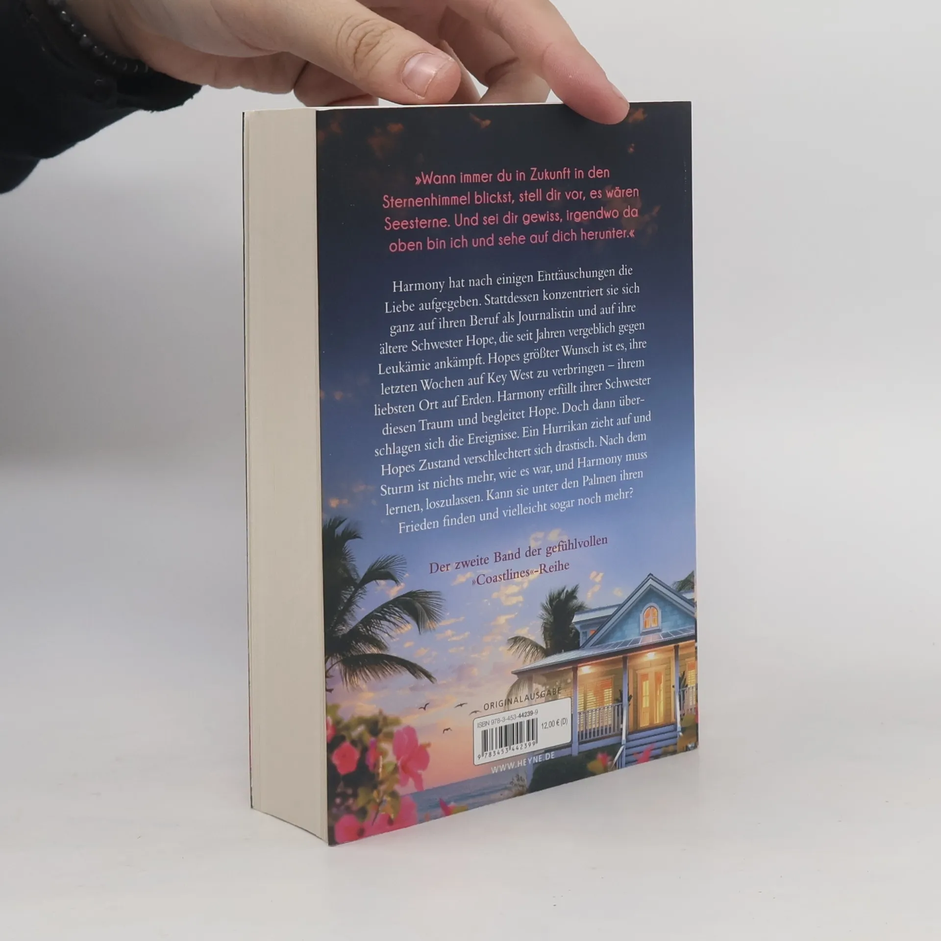 Auf Key West kämpft Harmony für ihre Schwester – und die Hoffnung Harmony lebt als Journalistin in Phoenix. Die Liebe hat sie nach einigen Enttäuschungen aufgegeben. Stattdessen konzentriert sie sich ganz auf ihren Beruf und auf ihre ältere Schwester Hope, die seit drei Jahren vergeblich gegen Leukämie ankämpft. Hopes größter Wunsch ist es, ihre letzten Wochen auf Key West zu verbringen – ihrem liebsten Ort auf Erden. Harmony begleitet Hope und erfüllt ihr einen Traum: noch einmal Delfine zu beobachten. Doch schon bald überschlagen sich die Ereignisse. Ein Hurrikan zieht auf und Hopes Zustand verschlechtert sich drastisch. Nach dem Sturm ist nichts mehr, wie es einmal war, und Harmony muss lernen, loszulassen. Kann sie unter den Palmen ihren Frieden finden und vielleicht sogar noch mehr?