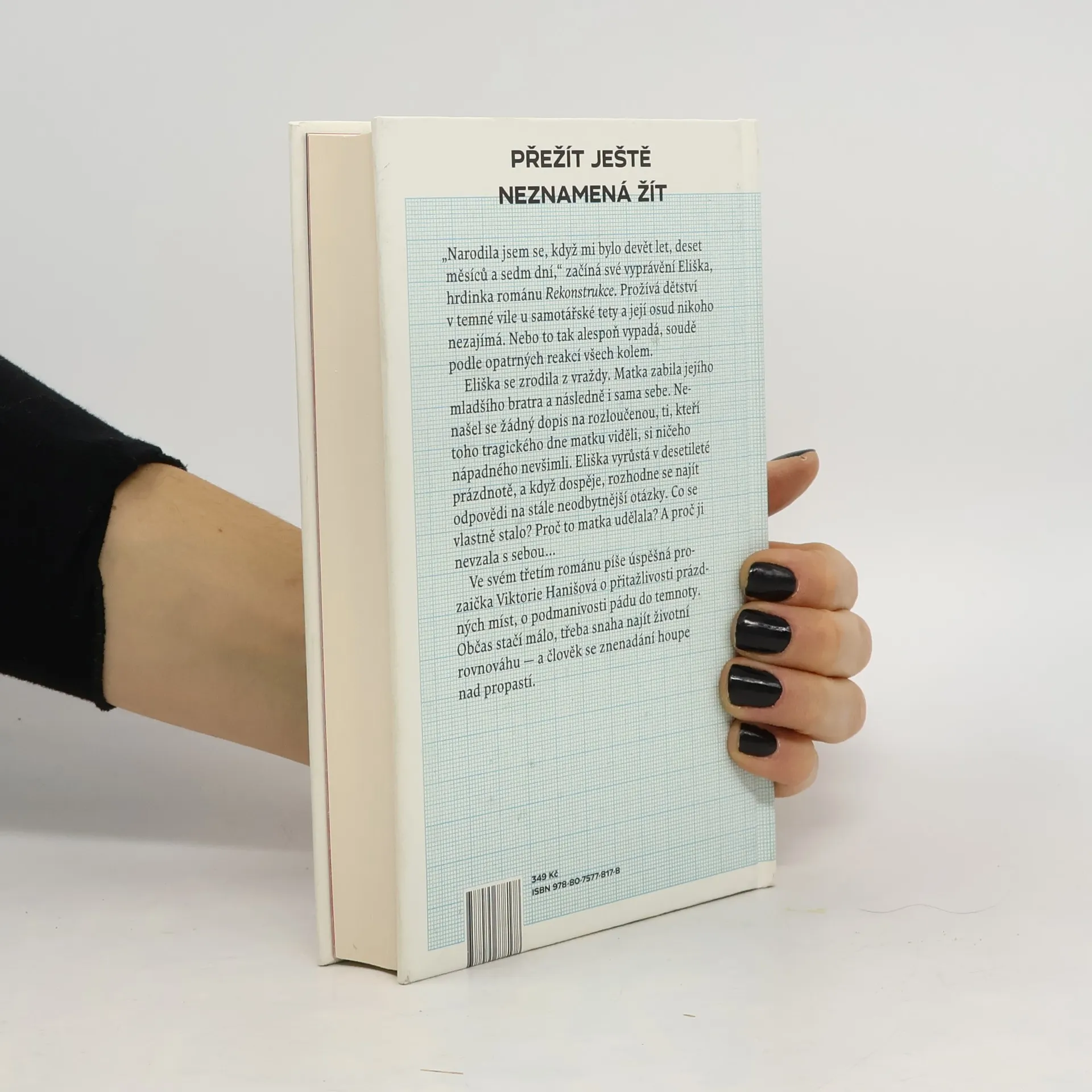 Přežít ještě neznamená žít „Narodila jsem se, když mi bylo devět let, deset měsíců a sedm dní,“ začíná své vyprávění Eliška, hrdinka románu Rekonstrukce. Eliška nyní přebývá v tichém domě své zapšklé tety a její život nikoho nezajímá. Nebo to tak alespoň vypadá, soudě podle opatrných reakcí všech okolo. Eliška se zrodila z vraždy. Matka zabila jejího mladšího bratra a následně i sama sebe. Do té doby přitom vedli průměrný život, v němž nic nenasvědčovalo nadcházející tragické události. Nenašel se ani žádný dopis na rozloučenou, svědkové posledního dne zamlklé matky s dítětem si pořádně ničeho nevšimli. Eliška proto vyrůstá s desetiletou prázdnotou místo dětství, kterou se v dospělosti rozhodne objasnit. Proč to matka udělala? A proč ji nevzala s sebou… V pořadí třetí román úspěšné prozaičky Viktorie Hanišové je o přitažlivosti prázdných míst, o podmanivosti pádu do temnoty. Občas stačí málo, třeba snaha najít životní rovnováhu — a člověk se znenadání kýve nad propastí.