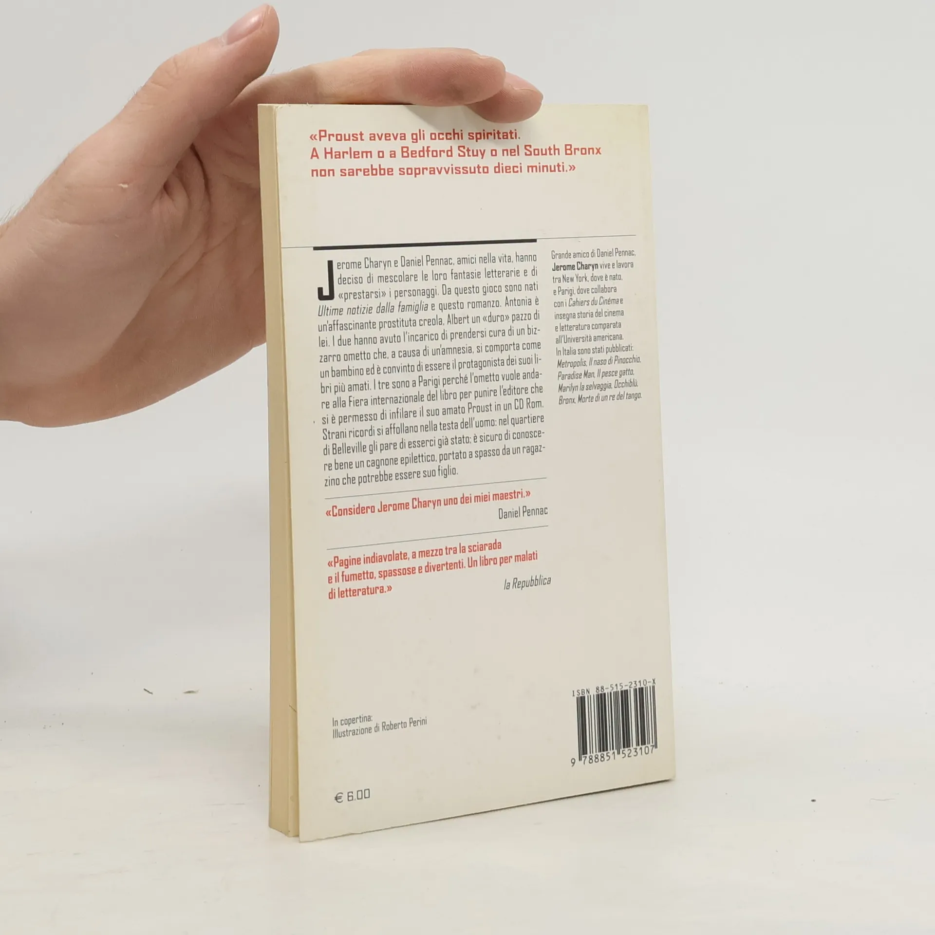 Jerome Charyn e Daniel Pennac, amici nella vita, hanno deciso di mescolare le loro fantasie letterarie e di "prestarsi" i personaggi. Da questo gioco sono nati Ultime notizie dalla famiglia e questo romanzo. Antonia è un'affascinante prostituta creola. Albert un "duro" pazzo di lei. I due hanno avuto l'incarico di prendersi cura di un bizzarro ometto che, a causa di un'amnesia, si comporta come un bambino ed è convinto di essere il protagonista dei suoi libri più amati. I tre sono a Parigi perché l'ometto vuole andare alla Fiera internazionale del libro per punire l'editore che si è permesso di infilare il suo amato Proust in un CD Rom. Strani ricordi si affollano nella testa dell'uomo: nel quartiere di Belleville gli pare di esserci già stato: è sicuro di conoscere bene un cagnone epilettico, portato a spasso da un ragazzino che potrebbe essere suo figlio.