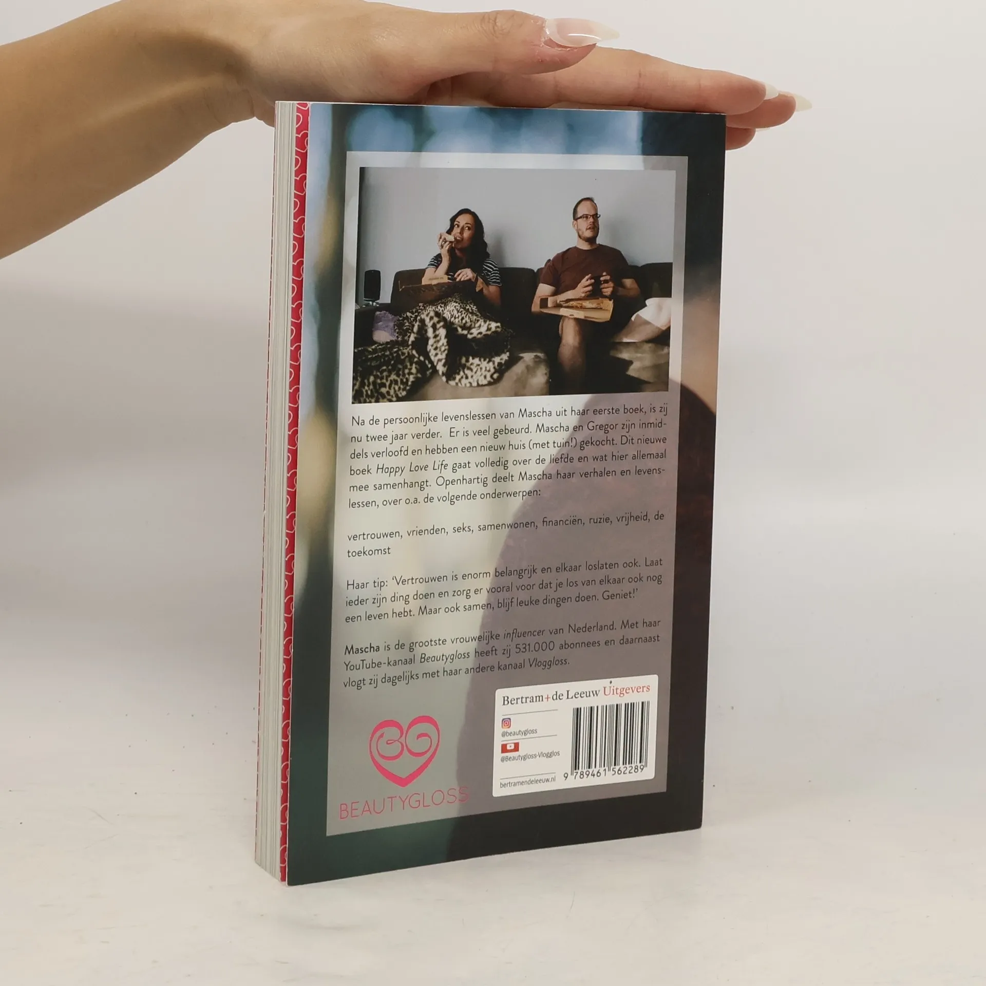 Na de persoonlijke levenslessen van Mascha uit haar eerste boek, is zij nu twee jaar verder. Er is veel gebeurd. Mascha en Gregor zijn inmiddels verloofd en hebben een nieuw huis (met tuin!) gekocht. Dit nieuwe boek Happy Love Life gaat volledig over de liefde en wat hier allemaal mee samenhangt. Openhartig deelt Mascha haar verhalen en levenslessen, over o.a. reizen, happy life, seks, samenwonen, financiën, ruzie, vrijheid, familie, lange relatie, vrienden, trouwen, elkaar door en door kennen, en nog veel meer!Haar tip: "Vertrouwen is enorm belangrijk en elkaar loslaten ook. Laat ieder zijn ding doen en zorg er vooral voor dat je los van elkaar ook nog een leven hebt. Maar ook samen, blijf leuke dingen doen. Geniet!"