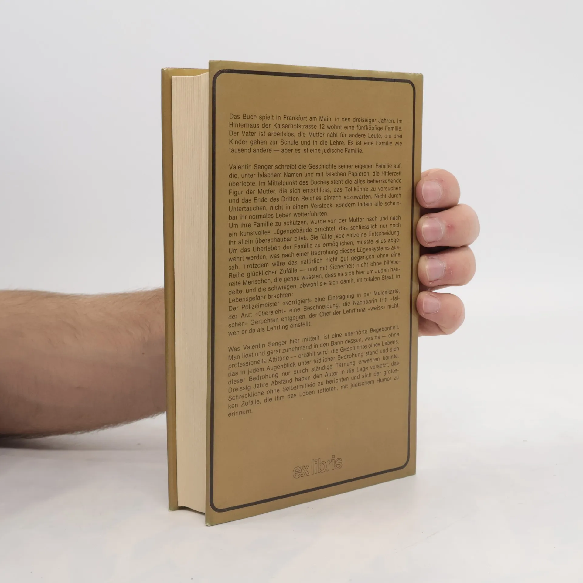 Es sind die dreißiger Jahre: In der Kaiserhofstraße in Frankfurt am Main leben Schauspieler, Transvestiten, Freudenmädchen, Burschenschaftler – und die Familie Senger. Als Kommunisten und Juden mussten sie aus dem zaristischen Russland fliehen und haben hier ein neues Zuhause gefunden – bis Adolf Hitler 1933 die Macht ergreift. Valentin Sengers Mutter Olga erkennt früh den Ernst der Lage: Mit gefälschten Papieren verschleiert sie die Spuren ihrer Herkunft ... Mit einem Nachwort von Peter Härtling. »Dass die untergetauchte Familie Senger mitten in Frankfurt am Main überlebt hat, ist ein Wunder. Und dass es dieses Buch (...) jetzt wieder gibt, ist ein Segen.«Brigitte