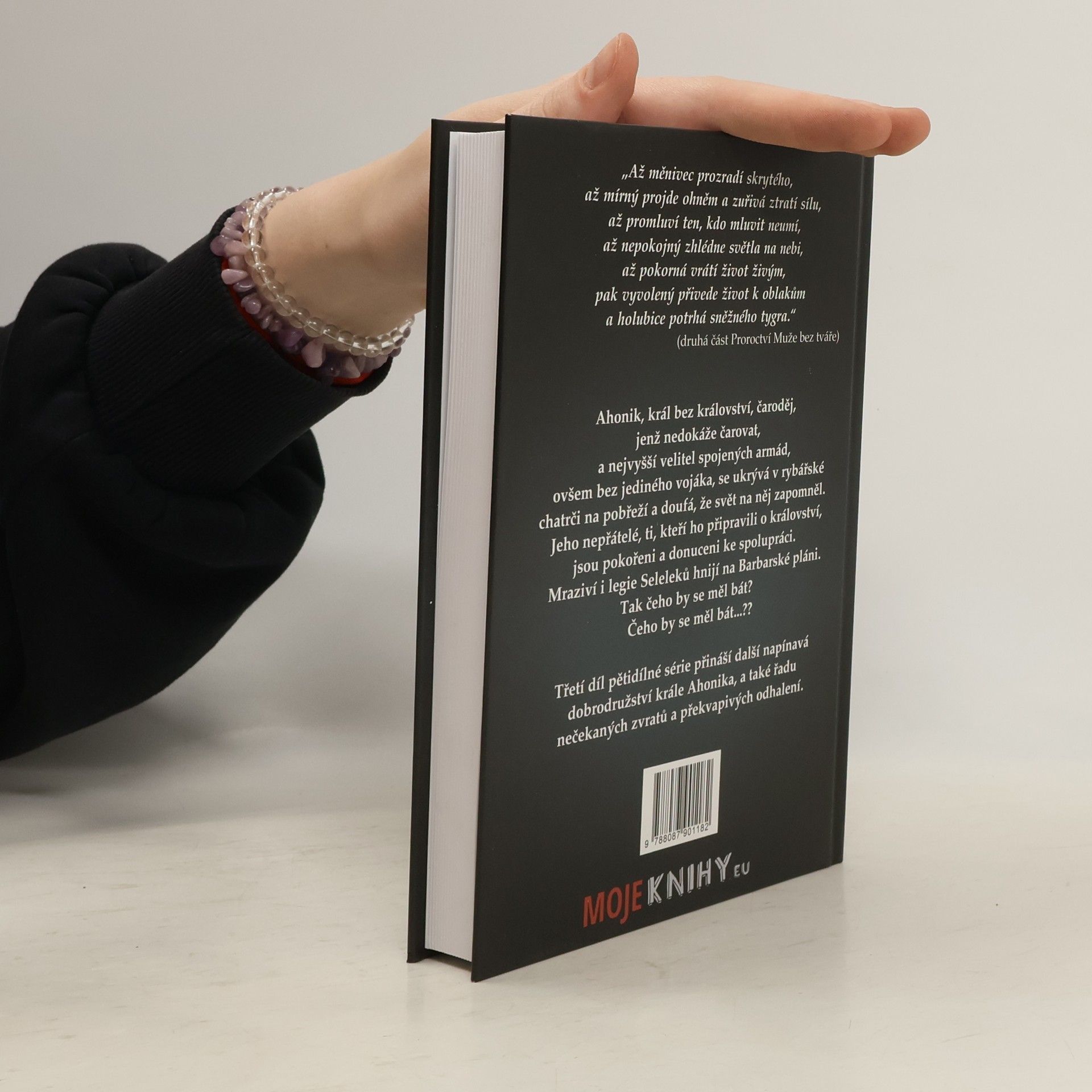 Ahonik, král bez království, čaroděj, jenž nedokáže čarovat, a nejvyšší velitel spojených armád, ovšem bez jediného vojáka, se ukrývá v rybářské chatrči na pobřeží a doufá, že svět na něj zapomněl. Jeho nepřátelé, ti, kteří ho připravili o království, jsou pokořeni a donuceni ke spolupráci. Mraziví i legie Seleleků hnijí na Barbarské pláni. Tak čeho by se měl bát? Čeho by se měl bát…?? Třetí díl pětidílné série přináší další napínavá dobrodružství krále Ahonika, a také řadu nečekaných zvratů a překvapivých odhalení. První vydání. -- zdroj: www.legie.info --