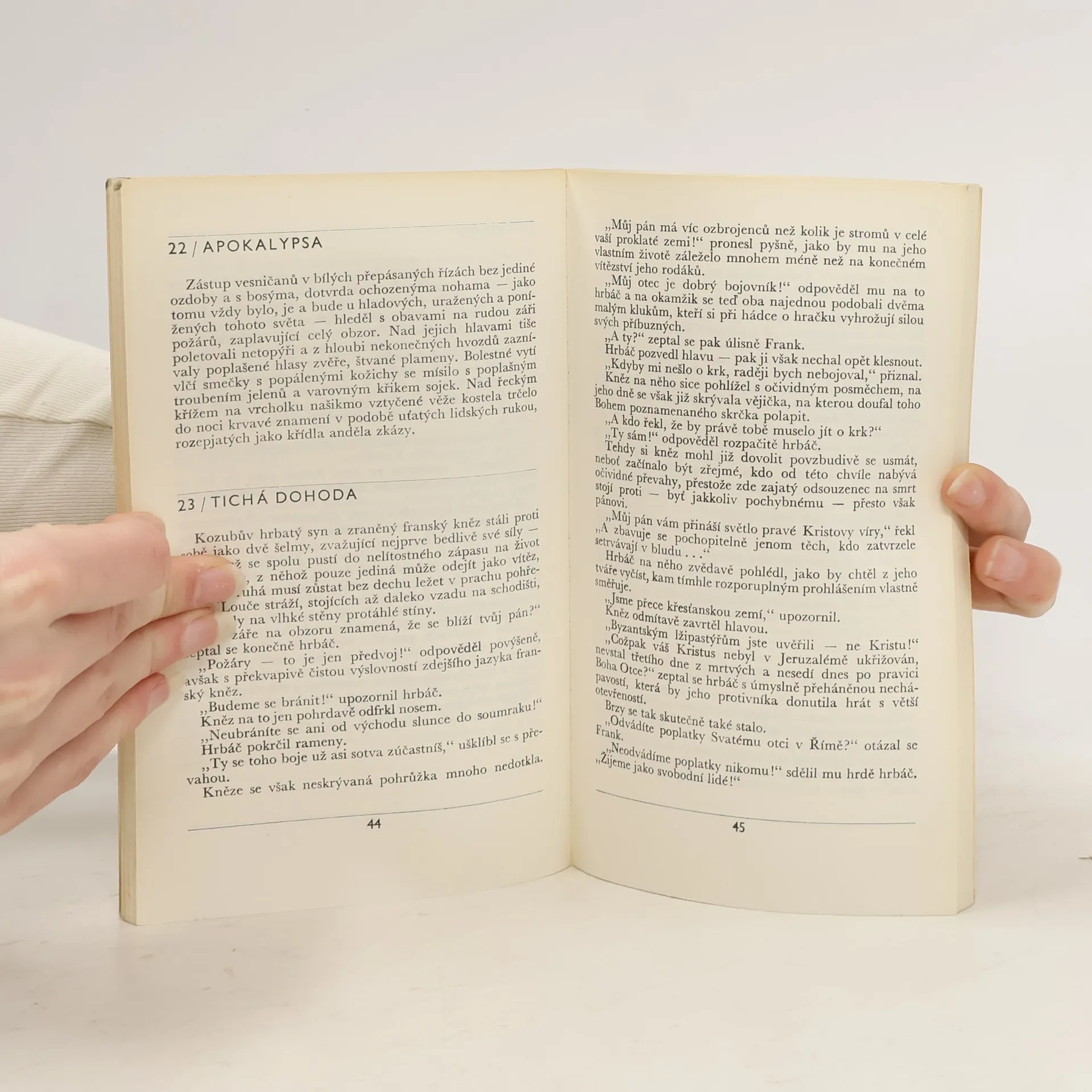 Svěcení slovanského jara - zachycuje obraz boje pohanství, řeckokatolického a římskokatolického náboženství. Spor o království - se odehrává v r. 1431-32 a zachycuje poslední léta života Prokopa Holého. Jeden den ze života Karla Sabiny - přináší životní bilanci umírajícího. Tři novely, ve kterých autor využívá látky z českých dějin k tlumočení morálních zásad jako jsou věrnost přesvědčení, pochopení pro druhé, snášenlivost. Doslov napsal Štěpán Vlašín.
