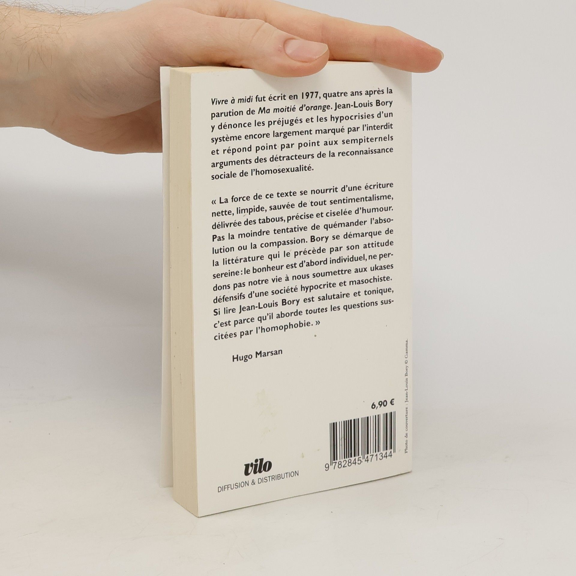 Vivre à midi fut écrit en 1977, quatre ans après la parution de Ma moitié d'orange. Jean-Louis Bory y dénonce les préjugés et les hypocrisies d'un système encore largement marqué par l'interdit et répond point par point aux sempiternels arguments des détracteurs de la reconnaissance sociale de l'homosexualité. " La force de ce texte se nourrit d'une écriture nette, limpide, sauvée de tout sentimentalisme, délivrée des tabous, précise et ciselée d'humour. Pas la moindre tentative de quémander l'absolution ou la compassion. Bory se démarque de la littérature qui le précède par son attitude sereine : le bonheur est d'abord individuel, ne perdons pas notre vie à nous soumettre aux ukases défensifs d'une société hypocrite et masochiste. Si lire Jean-Louis Bory est salutaire et tonique, c'est parce qu'il aborde toutes les questions suscitées par l'homophobie. " Hugo Marsan