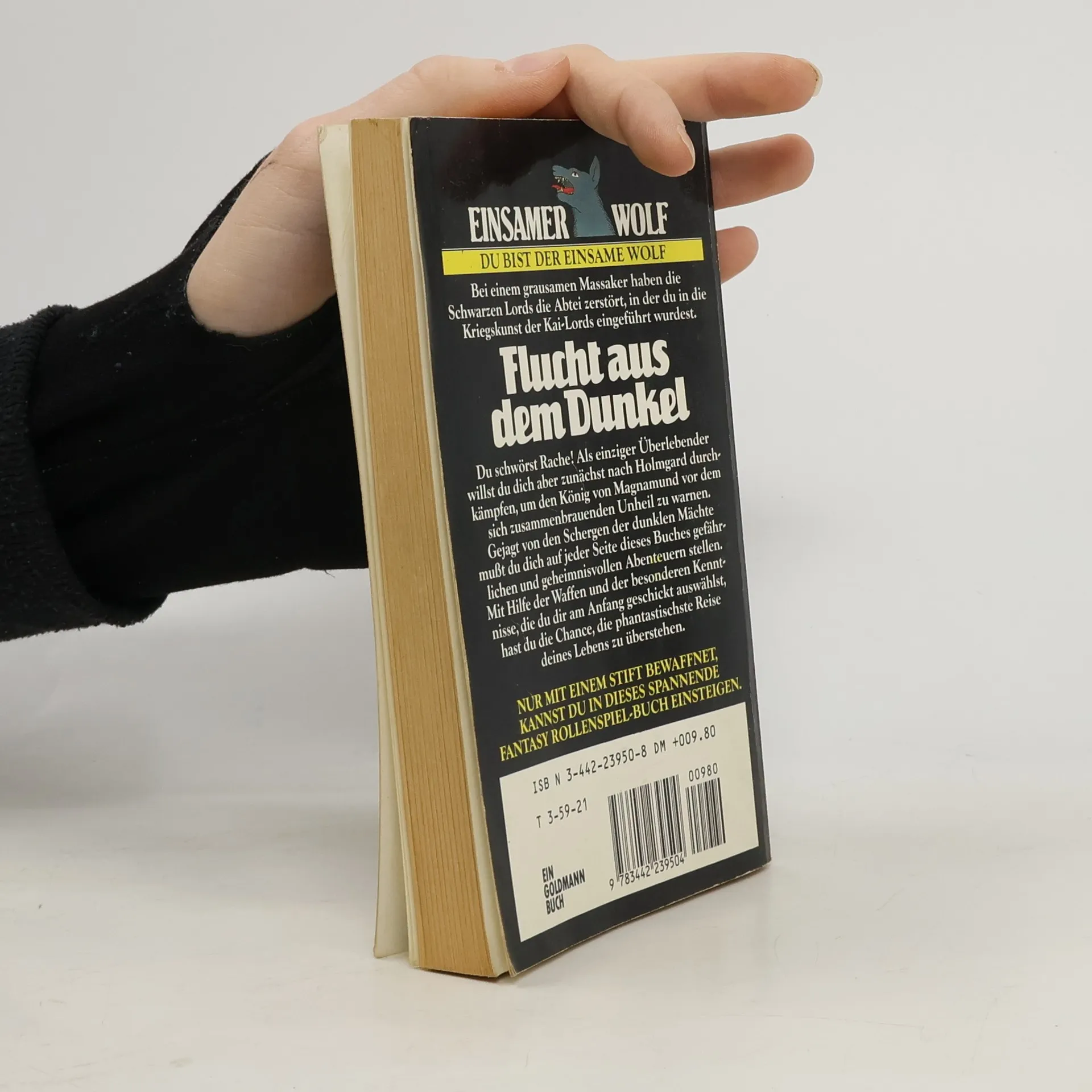 Bei einem grausamen Massaker haben die Schwarzen Lords die Abtei zerstört, in der du in die Kriegskunst der Kai-Lords eingeführt wurdest. Du schwörst Rache! Als einziger Überlebender willst du dich aber zunächst nach Holmgard durchkämpfen, um den König von Magnamund vor dem sich zusammenbrauenden Unheil zu warnen. Gejagt von den Schergen der dunklen Mächte mußt du dich auf jeder Seite dieses Buches gefährlichen und geheimnisvollen Abenteuern stellen. Mit Hilfe der Waffen und der besonderen Kenntnisse, die du dir am Anfang geschickt auswählst, hast du die Chance, die phantastischste Reise deines Lebens zu überstehen.
