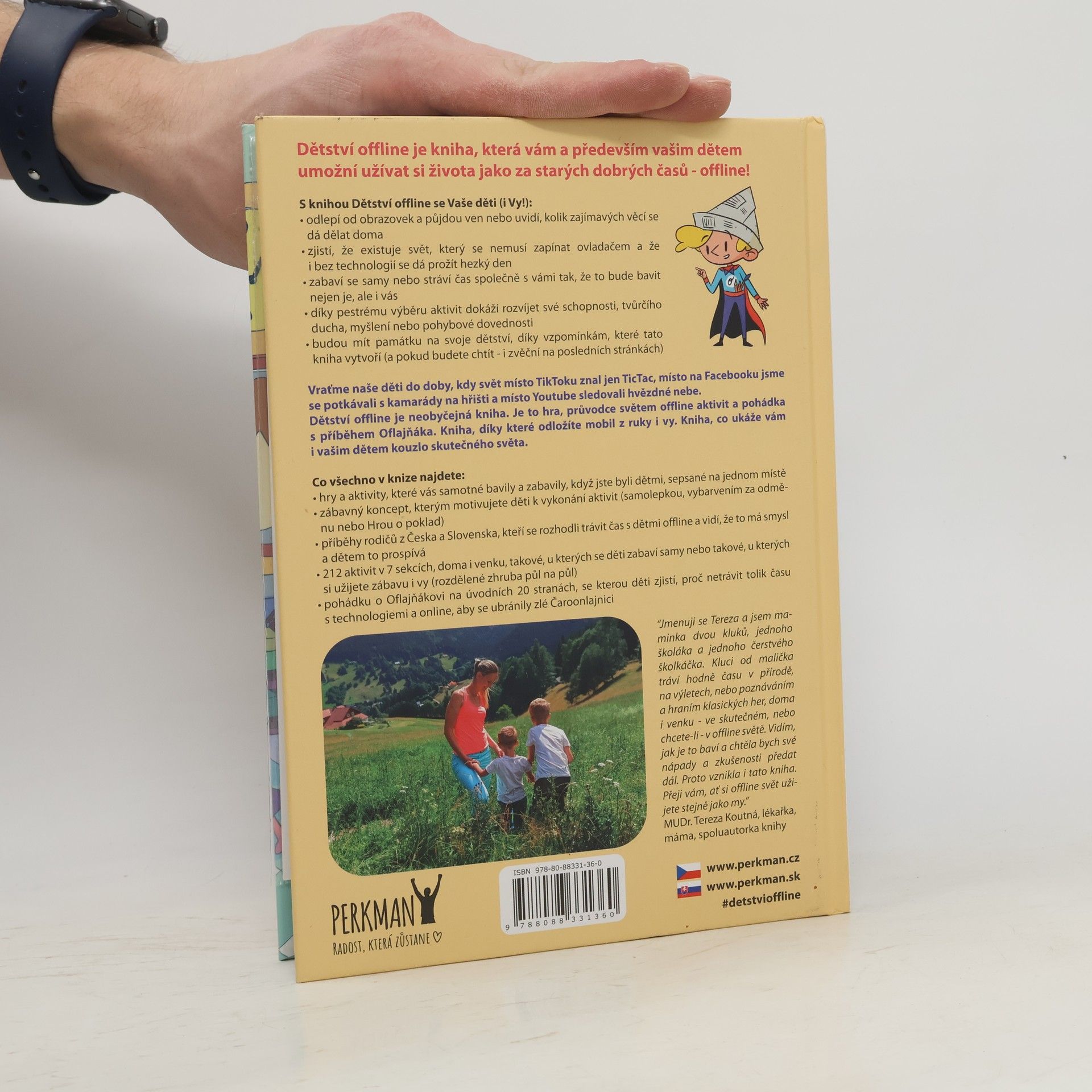 Dětství offline je kniha, která vám, a především vašim dětem, umožní užívat si života jako za starých dobrých časů - offline! Dětství offline je víc než kniha. Je to hra, hromada zážitků jako z dětského tábora a průvodce světem zábavy. Kniha, která pomůže vám, rodičům, plánovat den a ukázat dětem kouzlo skutečného světa. Pro děti od 3 do 9 let a celou rodinu. S touto knížkou se vaše děti odlepí od obrazovek, půjdou ven nebo uvidí, kolik zajímavých věcí mohou dělat doma. Zjistí, že i bez technologií, počítačů, tabletů a mobilů prožijí hezký den. Co v knize najdete: - 212 her a aktivit na doma i ven, které vás samotné v dětství bavily a zabavily (z toho polovinu, u kterých se snadno zabaví samy) - zábavný koncept, kterým děti snadno motivujete (samolepkou, vybarvením za odměnu nebo Hrou o poklad) - příběhy a fotky rodin z Česka a Slovenska. Jak se vypořádávají s nastavením hranic používání mobilů a počítačů pro děti? - články a tipy o zdravém přístupu k technologiím. Jak dětem pomoci?