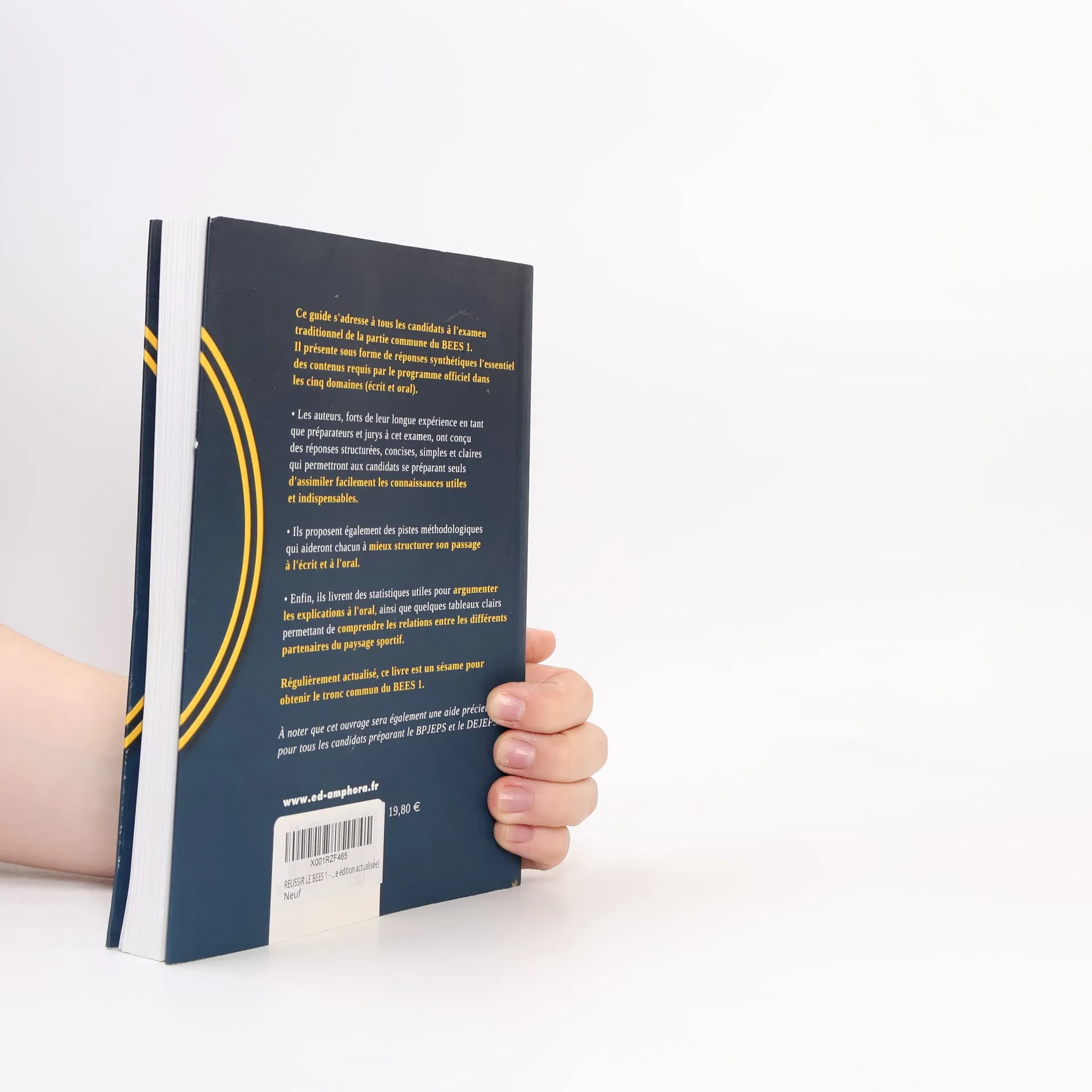 Ce guide s'adresse à tous les candidats à l'examen traditionnel de la partie commune du BEES 1. Il présente sous forme de réponses synthétiques l'essentiel des contenus requis par le programme officiel dans les cinq domaines (écrit et oral). Les auteurs, forts de leur longue expérience en tant que préparateurs et jurys à cet examen, ont conçu des réponses structurées, concises, simples et claires qui permettront aux candidats se préparant seuls d'assimiler facilement les connaissances utiles et indispensables. Ils proposent également des pistes méthodologiques qui aideront chacun à mieux structurer son passage à l'écrit et à l'oral. Enfin, ils livrent des statistiques utiles pour argumenter les explications à l'oral, ainsi que quelques tableaux clairs permettant de comprendre les relations entre les différents partenaires du paysage sportif. Régulièrement actualisé, ce livre est un sésame pour obtenir le tronc commun du BEES 1.