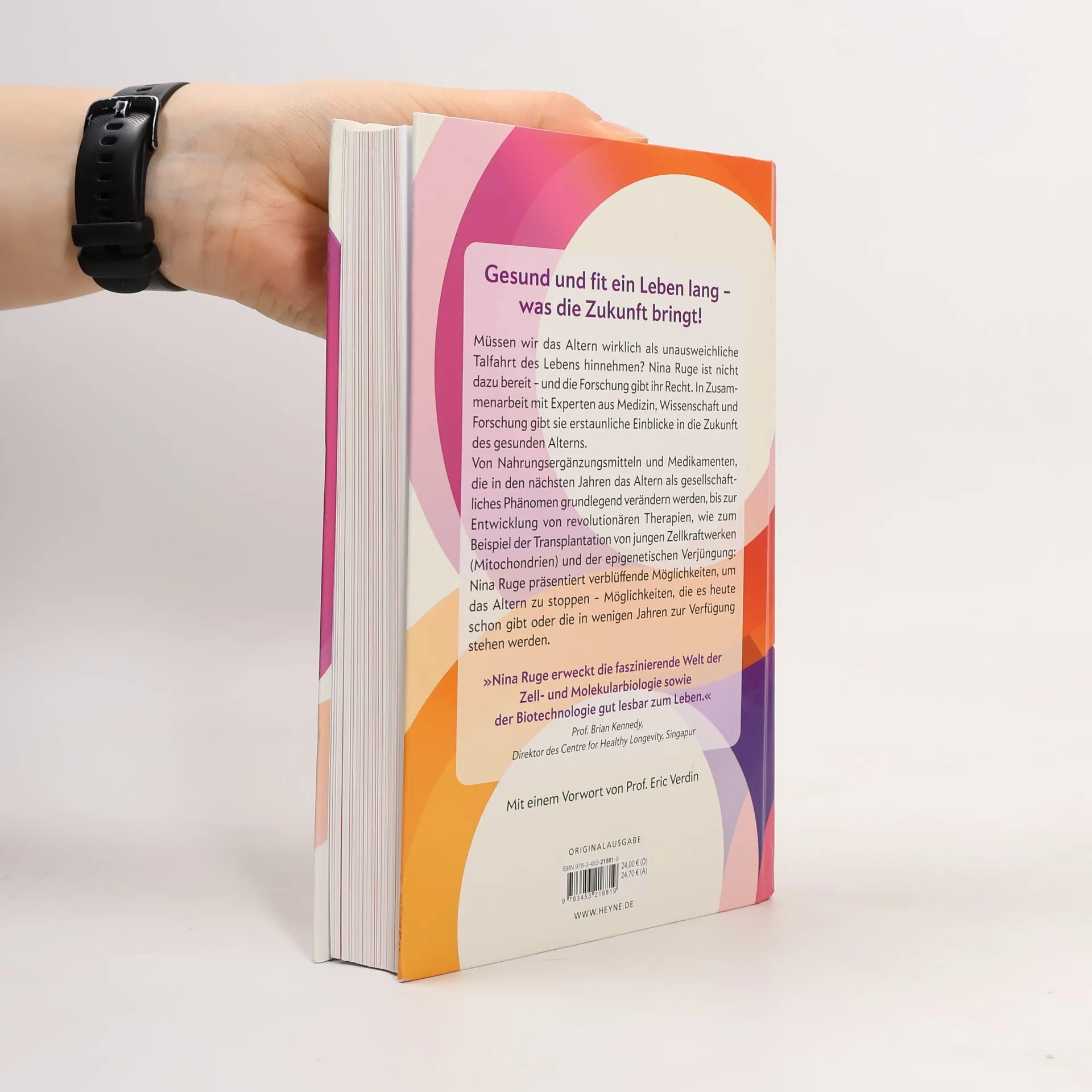 Müssen wir das Altern wirklich als unausweichliche Talfahrt des Lebens hinnehmen? Nina Ruge ist nicht dazu bereit – und die Forschung gibt ihr Recht. In »Ab morgen jünger!« präsentiert die Bestsellerautorin die neuesten wissenschaftlichen Erkenntnisse darüber, wie wir deutlich länger gesund bleiben können. In Zusammenarbeit mit Experten aus Medizin, Wissenschaft und Forschung gibt sie uns Einblicke in die Zukunft des gesunden Alterns. Von Nahrungsergänzungsmitteln und Medikamenten, die in den nächsten Jahren das Altern als gesellschaftliches Phänomen grundlegend verändern werden, bis zur Entwicklung von revolutionären Therapien, wie zum Beispiel die Transplantation von jungen Zellkraftwerken (Mitochondrien)und die epigenetische Verjüngung: Nina Ruge führt verblüffende Möglichkeiten vor Augen, um das Altern zu stoppen – Möglichkeiten, die es heute schon gibt oder die in wenigen Jahren zur Verfügung stehen werden. Ausstattung: durchg. 4c