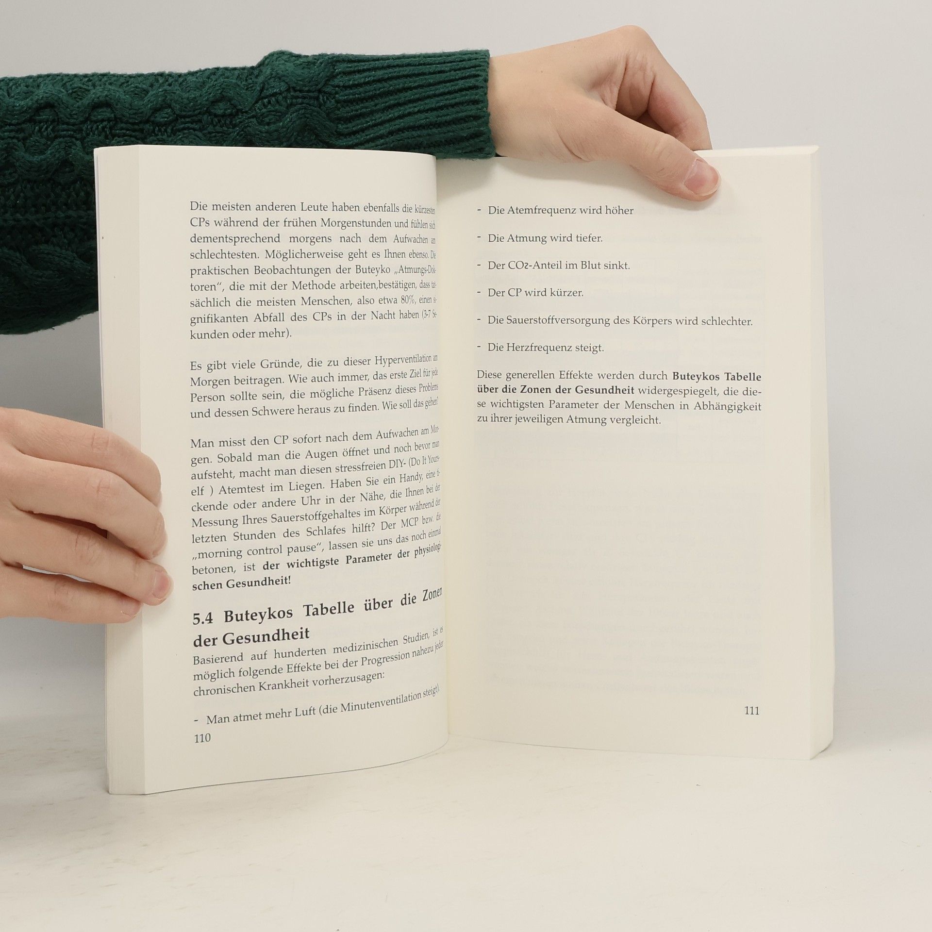 Seit den 1960er Jahren wurde in vielen Yogabüchern und von fast allen Lehrern der Mythos des Tiefatmens verbreitet: Man solle sogar in Ruhe aber auch generell mehr atmen und „toxisches“ COᴤ ausatmen. Dagegen zeigen und beweisen hunderte medizinische Studien, dass das Gegenteil der Fall ist und Hyperventilation die Sauerstoffmenge in Zellen, Organen und Gehirn reduziert, während COᴤ äußerst wichtig für die Gesundheit ist. Tiefe Atmung während eines korrekten Pranayamas sieht lediglich aus, als sei sie tief. In Wirklichkeit und übereinstimmend mit den klassischen Yogaschriften sollte man Pranayama mit langen Atemanhaltungen und hoher Akkumulation von COᴤ ausführen, so dass man nach den Übungen dauerhaft langsamer atmet. Nur mit dem Fortschritt im Pranayama kann den wichtigsten Nutzen aus Yoga ziehen, wie etwa Gewichtsverlust, Freiheit von chronischen Krankheiten usw. Millionen glauben, dass die Verbesserungen in der gesundheitlichen Verfassung mit den schwerer werdenden Posen (Asana) zusammenhängt. Die Wahrheit aber ist, dass das Ausführen von welcher Pose auch immer noch keine Garantie gibt, dass sich die Gesundheit verbessert. Der eigentliche Nutzen, so wie es alte Texte in Sanskrit auch lehren, liegt in der dauerhaft verringerten Atmung, idealer weise sogar noch unter der ohnehin schon niedrigen medizinischen Norm (die medizinische Norm erreicht heute auch schon kaum jemand mehr) . Erst dann kann man erwarten, dauerhaft mehr Sauerstoff im Gehirn und andere Organen zu bekommen. Dazu kommen auf natürliche Weise reduzierte Schlafzeiten und andere wirklich messbare Vorteile des Yoga. Hier sind einige generelle Ideen, die von hunderten Studien gestützt werden und im Buch zitiert sind: Schwerkranke Personen Die Atemfrequenz in Ruhe: > 25 Atemzüge/ min Sauerstoffversorgung für den CP-Test (wird im Buch vorgestellt): < 10 s Effekte: Oft hospitalisiert und fast immer unter Medikation. Die Schlafqualität ist schlecht und der Schlaf ist oft länger als 10 h Die Mehrheit der heutigen Menschen (inkl. Yogis) Die Atemfrequenz in Ruhe: 15-25 Atemzüge/ min Sauerstoffversorgung für den CP-Test: 10-25 s Effekte: Die Schlafqualität ist öfter schlecht und der Schlaf ist oft länger als 7 h; oft geringe Stressresilienz und emotionale Instabilität; Gesunde Personen (med. Norm) Die Atemfrequenz in Ruhe: 10-12 Atemzüge/ min Sauerstoffversorgung für den CP-Test: > 40 s Effekte: Die Schlafqualität ist gut und der Schlaf ist nicht länger als 6 h; Abwesenheit von chronischen Krankheiten und ihren Symptomen, ein dauerhaft hohes Energielevel und gute Körperhaltung; Echte Yogameister Die Atemfrequenz in Ruhe: 3-5 Atemzüge/ min Sauerstoffversorgung für den CP-Test: < 2-3 min; Maximale Atempausen nach dem Einatmen von 7-9 Minuten sind möglich Effekte: Die Schlafqualität ist extrem gut und der Schlaf ist nicht länger als 3h; Abwesenheit von chronischen Krankheiten; natürliche Verwirklichung von Meditation usw. In den Yoga Sturen des Patanjali oder der Hatha Yoga Pradipika und vielen andern der sehr alten wichtigsten Quellen ist es bereits erfasst worden. Ruhe und Stille in die Atmung zu bringen, sowie die Atmung lange anzuhalten sind fundamental. Dies erhöht die Sauerstoffversorgung. Tausende der neusten medizinischen Studien belegen dieses alte Wissen: Chronische Krankheiten bilden sich, sobald der Körper langfristig schlechter Sauerstoffversorgung ausgesetzt ist. Dies gilt bspw.