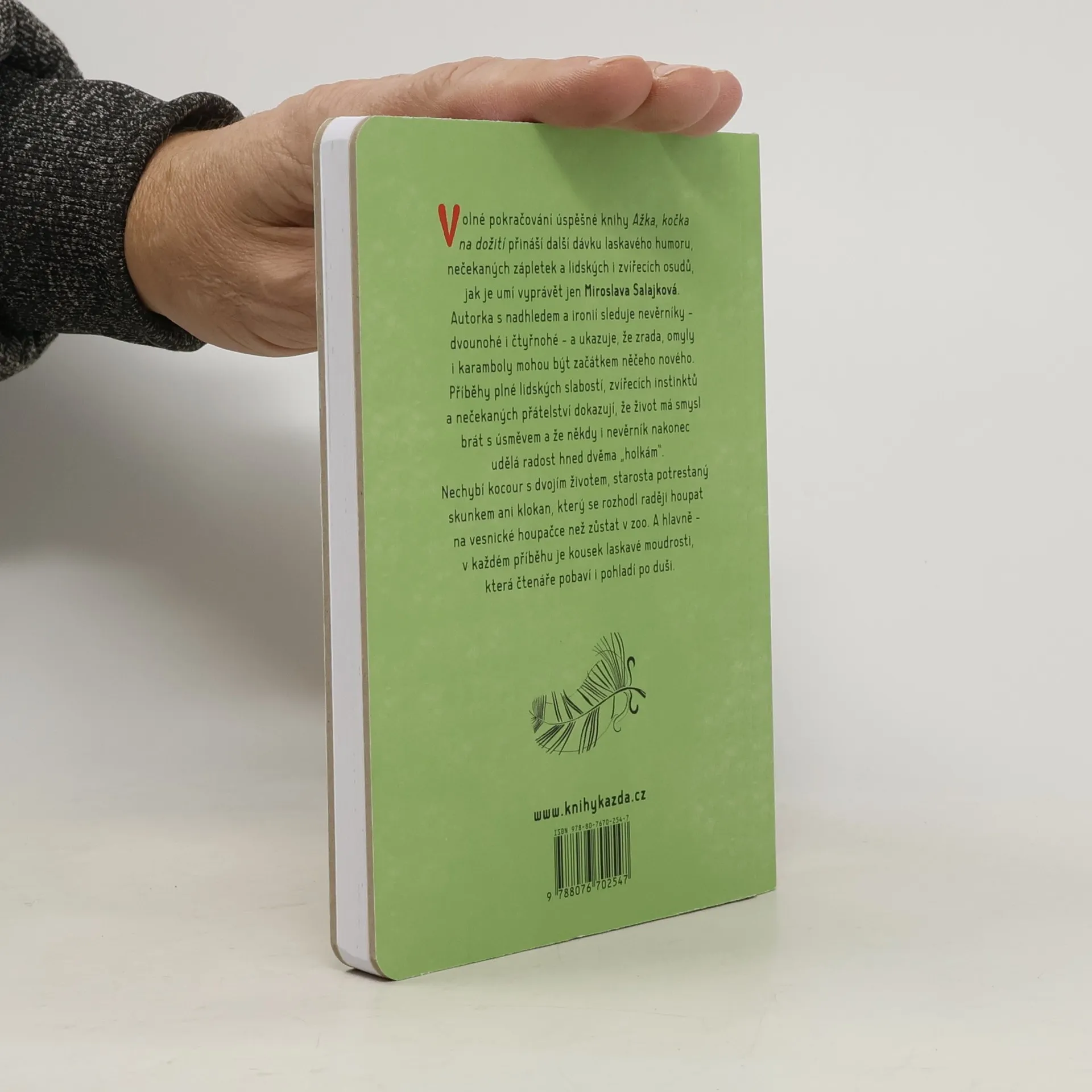 Volné pokračování úspěšné knihy Ažka, kočka na dožití přináší další dávku laskavého humoru, nečekaných zápletek a lidských i zvířecích osudů, jak je umí vyprávět jen Miroslava Salajková. Autorka s nadhledem a ironií sleduje nevěrníky – dvounohé i čtyřnohé – a ukazuje, že zrada, omyly i karamboly mohou být začátkem něčeho nového. Příběhy plné lidských slabostí, zvířecích instinktů a nečekaných přátelství dokazují, že život má smysl brát s úsměvem a že někdy i nevěrník nakonec udělá radost hned dvěma „holkám“. Nechybí kocour s dvojím životem, starosta potrestaný skunkem ani klokan, který se raději houpe na vesnické houpačce, než aby zůstal v zoo. V každém příběhu je kousek laskavé moudrosti, která čtenáře pobaví i pohladí po duši.