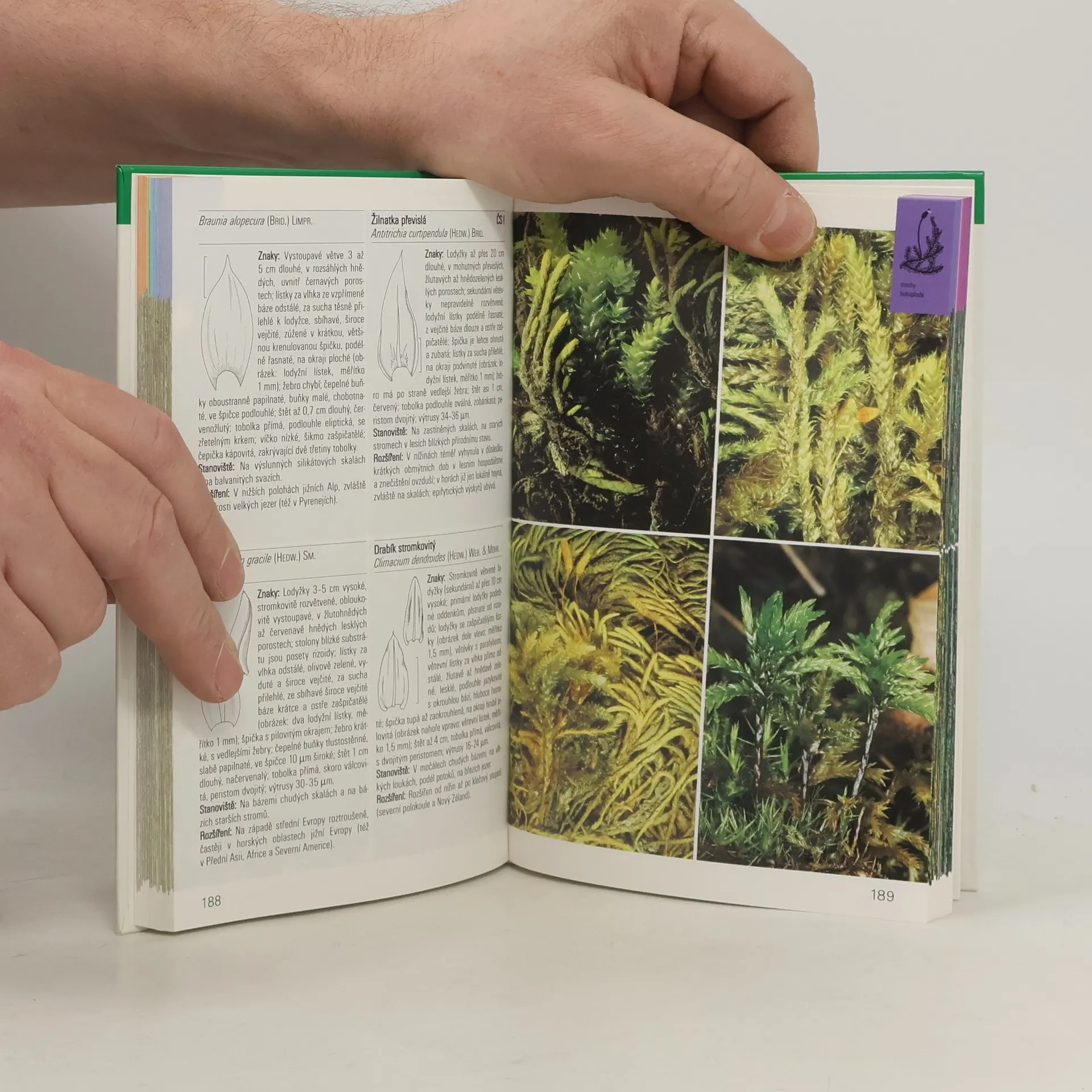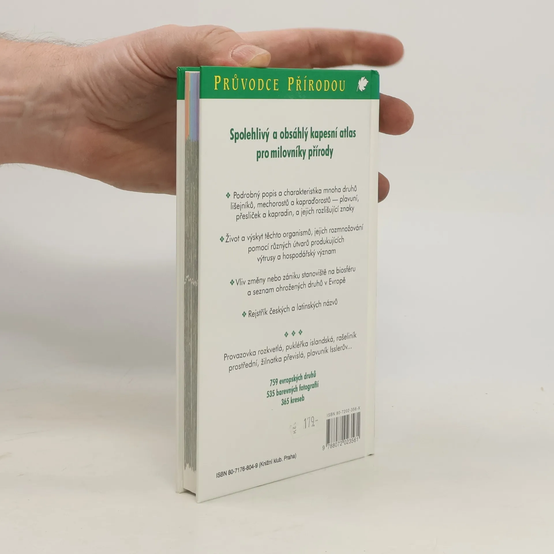 Kapesní atlas evropských druhů lišejníků, mechorostů a kapraďorostů. Kniha s krásnými barevnými fotografiemi,doplněnými perokresbami detailů a stručnými,ale výstižnými popisy,informuje o významných druzích tří systematicky odliš- ných skupin - lišejníků,mechorostů a kapraďorostů.Kniha je proto rozdělena do tří částí.Na začátku každé kapitoly je stručná charakteristika skupiny organismů a důležité pojmy pro pochopení popisů a nákresů v atlase.