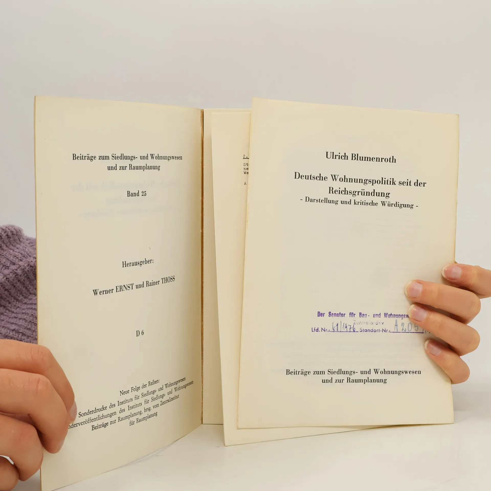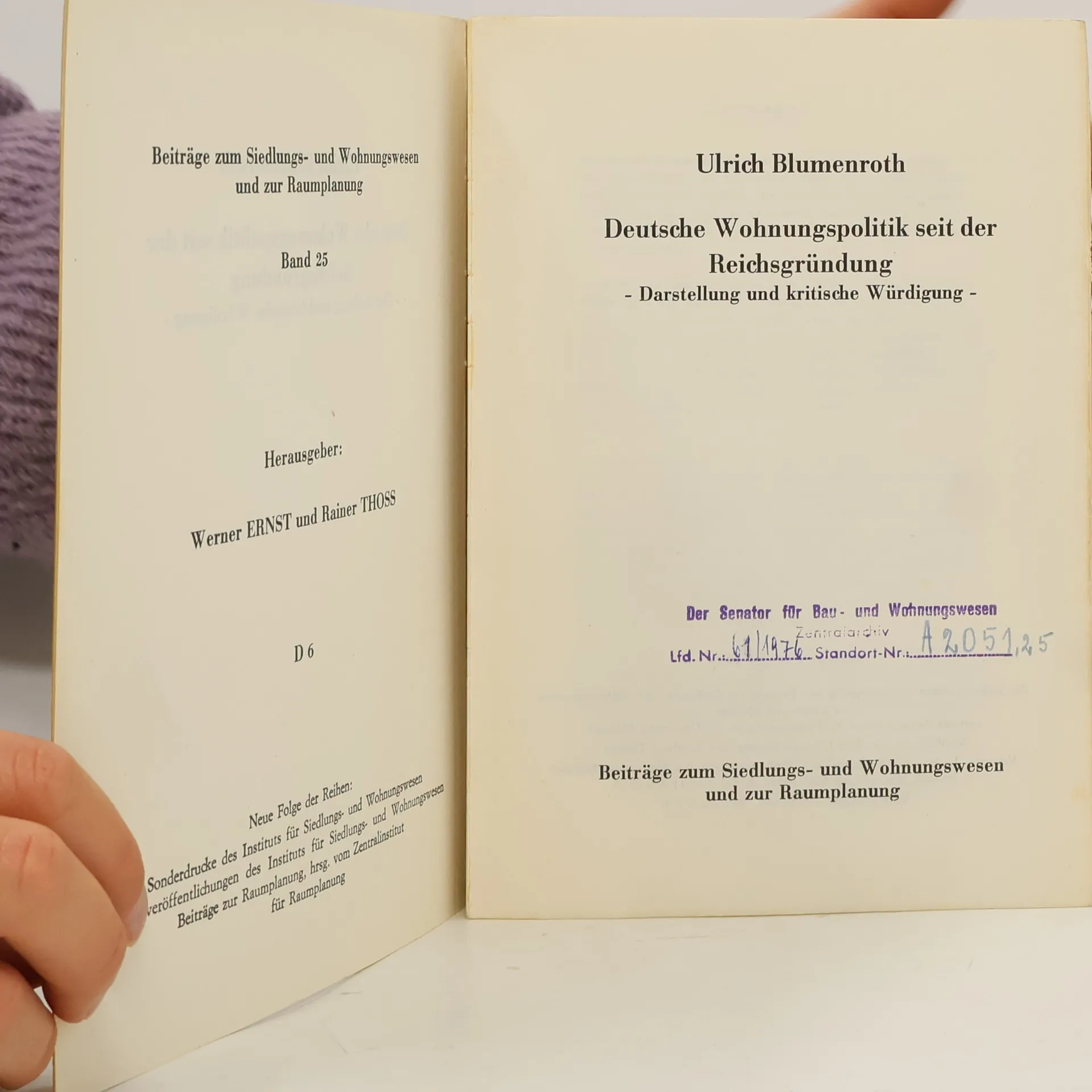 Deutsche Wohnungspolitik seit der Reichsgründung, Ulrich Blumenroth