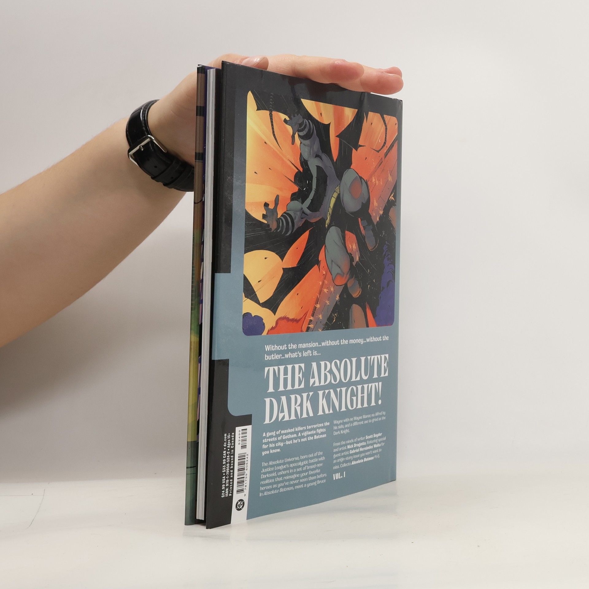 Without the wealth, without the cave, he's still the Absolute Dark Knight! Meet Batman as you've never seen him before, reimagined with a modern origin story at the hands of superstar creative team Scott Snyder and Nick Dragotta! An astonishing new version of DC's iconic characters is here! In the Absolute Universe, familiar heroes have been reinvented from the ground up with origin stories that completely reshape both their abilities and their circumstances but maintain the core characteristics that fans have known and loved for decades! Bruce Wayne comes from nothing. He's not the scion of a wealthy empire in Gotham City, he's the son of a public school teacher who he experienced the unimaginable horror of random gun violence as a child, changing the trajectory of his life forever. With no limitless resources, no billions to fund him, no mansion, and no butler to care for him, Bruce has shaped himself into an entirely different breed of Batman, one that is equal parts brain and brawn, who exists exclusively in the grittiest and most underserved parts of Gotham with no high society mask to fall back on.