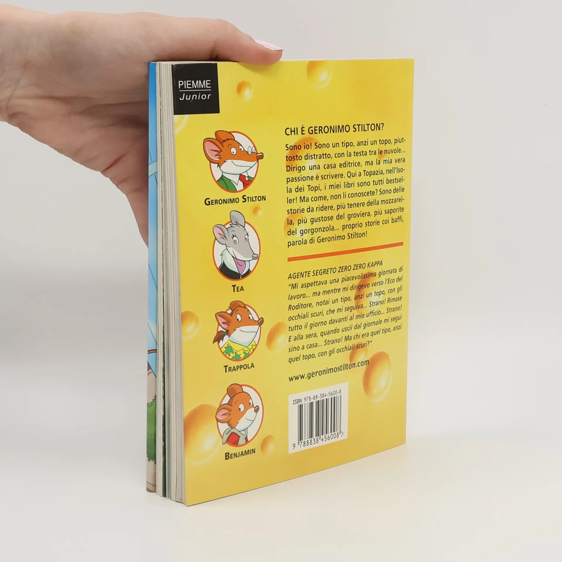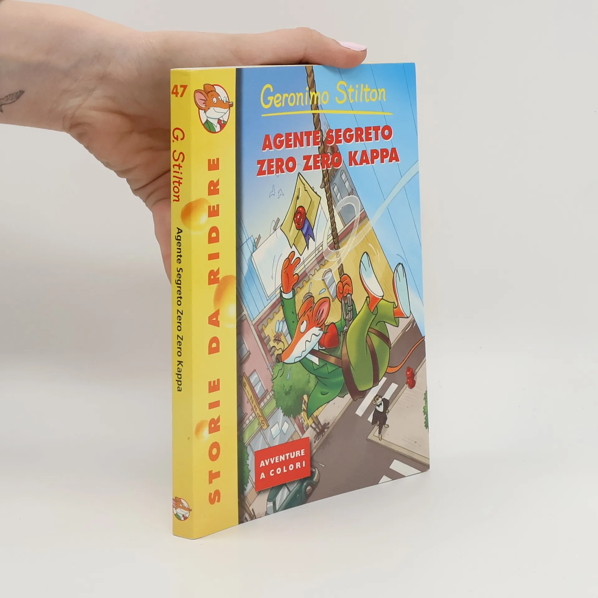 Quella che sembra una mattina tranquilla, si trasforma ben presto per Geronimo in un vero incubo... Basta infatti una folata di vento per far volare fuori dalla finestra una lettera misteriosa, sigillata con un bollo di ceralacca rosso, che Nonno Torquato aveva lasciato sulla sua scrivania. Al povero Geronimo non resta che iniziare a rincorrere la lettera che, ormai in balìa del vento, sta svolazzando per le vie della città. Dal mercato del pesce alla discarica di Topazia e infine nelle fogne della città. Ma la busta non si trova. Per fortuna gli amici compaiono sempre nel momento del bisogno e Kornelius Van Der Kaciot, vecchio amico e compagno di scuola di Geronimo, arriva proprio al momento giusto. Chi meglio di un agente segreto per scovare questa lettera misteriosa? E lui è proprio un agente segreto in piena regola, con tanto di occhiali scuri, impermeabile con mille tasche segrete e un nome in codice: Zero Zero Kappa... Età di lettura: da 6 anni.