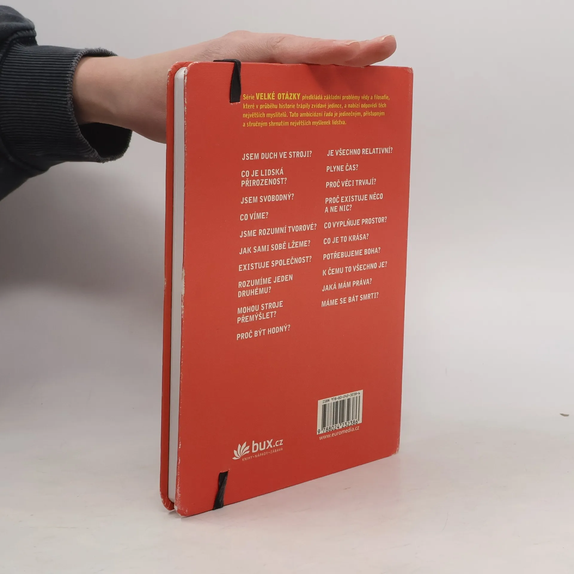 Ambiciózní řada Velké otázky je jedinečným, přístupným a stručným shrnutím největších myšlenek lidstva. Předkládá základní problémy vědy a filosofie a nabízí odpovědi nejvýznamnějších myslitelů. Jsem duch ve stroji? Co je lidská přirozenost? Jsem svobodný? Co víme? Jsme rozumní tvorové? Jak sami sobě lžeme? Existuje společnost? Rozumíme jeden druhému? Mohou stroje přemýšlet? Proč být hodný? Je všechno relativní? Plyne čas? Proč věci trvají? Proč existuje něco a ne nic? Co vyplňuje prostor? Co je to krása? Potřebujeme Boha? K čemu to všechno je? Jaká mám práva? Máme se bát smrti?