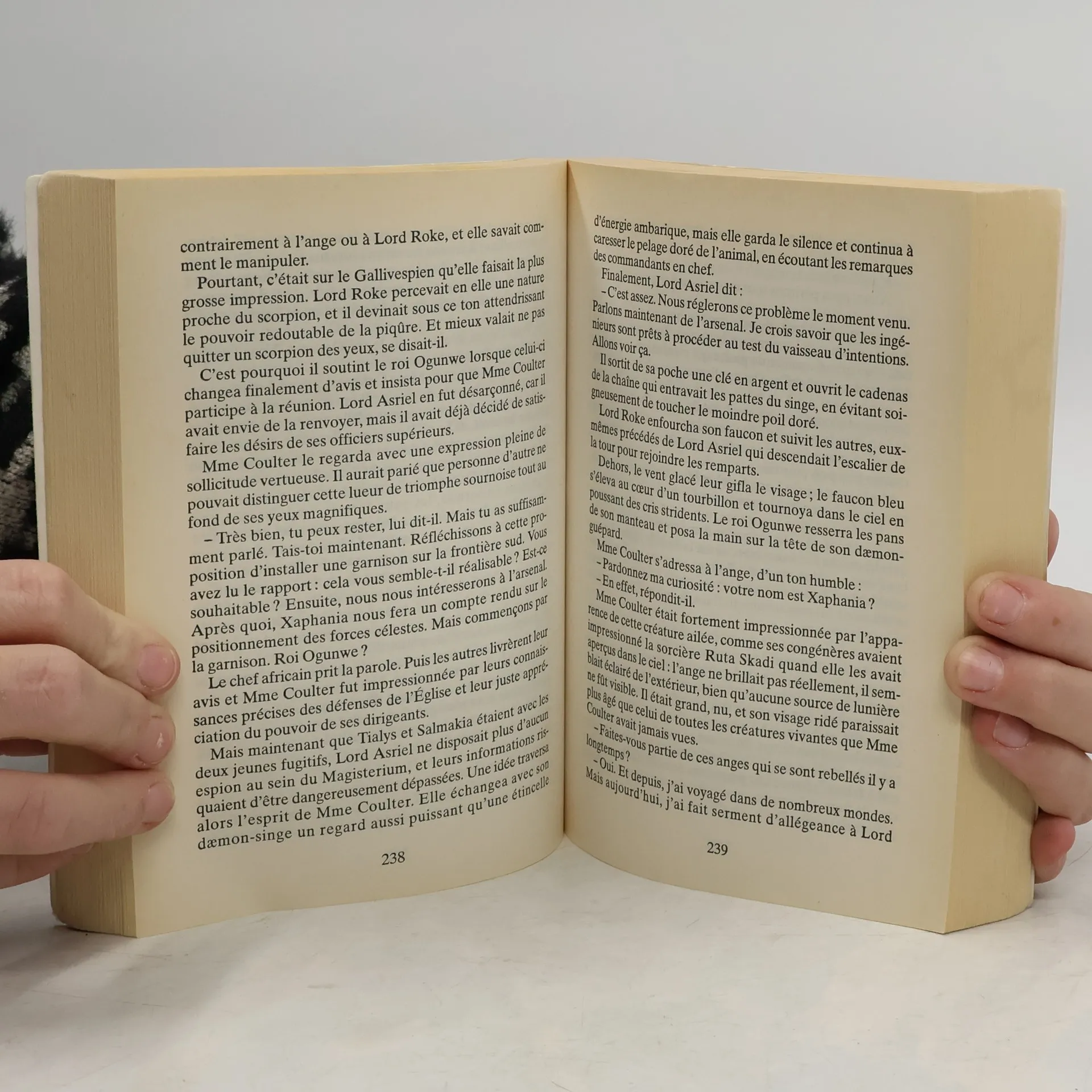 Nous avions quitté les deux jeunes héros, Lyra et Will, alors qu'ils venaient d'être séparés. Lyra a été enlevée par sa redoutable mère, Mme Coulter. Will doit rejoindre Lord Asriel, qui vit retranché, au sommet d'une montagne, dans sa citadelle imprenable, car une mission capitale l'attend. Vont-ils réussir à se rejoindre et à sauver tous les mondes parallèles, plus que jamais menacés par les forces obscures qui tentent d'imposer leur terrible loi ? On retrouve avec le plus grand plaisir l'univers captivant et original de Philip Pullman, mais aussi de nouveaux personnages comme les Gallivespiens, de minuscules créatures à la vie très brève, qui voyagent sur des libellules tout en reprenant les éléments qui ont fait le succès des deux premiers tomes, l'auteur parvient à renouveler son imaginaire pour conclure magistralement sa prodigieuse saga. Lyra, l'héroïne des Royaumes du Mord et de la Tour des Anges, est retenue prison nière par sa mère, l'ambitieuse et cruelle Mme Coulter qui, pour mieux s'assurer de sa docilité, l'a plongée dans un sommeil artificiel. Will, le compagnon de Lyra, armé du p oignard subtil, s'est lancé à sa recherche, escorté de deux anges, Balthamos et Baruch. Avec leur aide, il parviendra à délivrer son amie. Mais, à son réveil, Lyra lui annonc e qu'une mission encore plus périlleuse, presque désespérée, les attend : ils doivent d escendre dans le monde des morts...