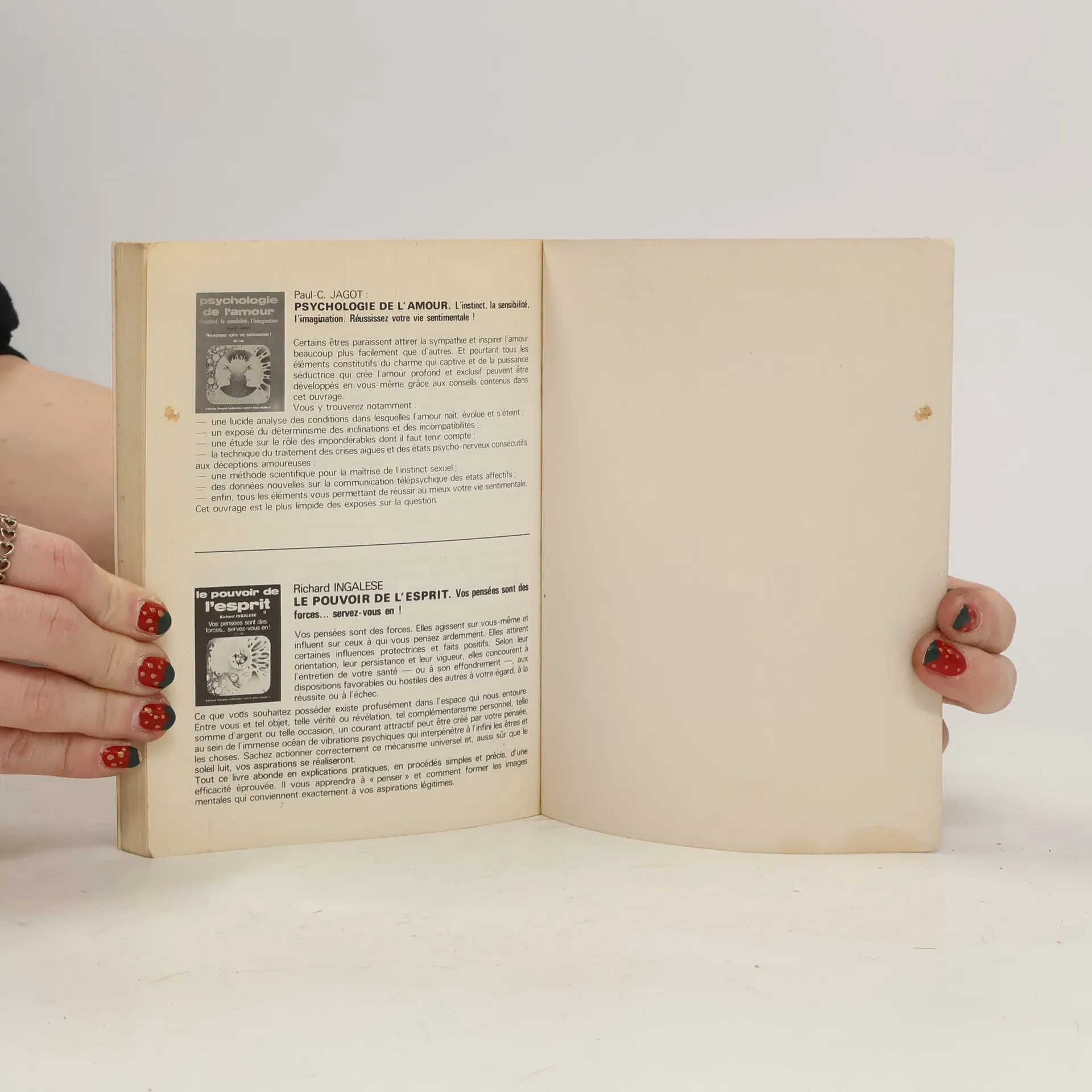 La vue d’une personne ne nous renseigne que sur son aspect physique qui peut, d’ailleurs, être plus ou moins sincère et factice. Par contre, l’analyse de son écriture, fixant ses gestes inconscients, dévoile aux initiés sa nature intime et profonde. Parmi les nombreux ouvrages sur la graphologie — généralement très techniques et très arides — voici enfin un cours réellement pratique, conçu de telle manière qu’il permet au lecteur débutant de s’initier et de pratiquer sur-le-champ la graphologie. Plus de 180 reproductions de spécimens d’écriture font de ce livre un merveilleux manuel de base pour chacun, débutant ou confirmé. Les connaissances que vous en retirerez-vous permettront immédiatement de mieux connaître votre entourage, au hasard de vos contacts sociaux, professionnels et affectifs. Que d’erreurs et de malentendus seraient évités si nous pouvions appréhender avec exactitude les motivations et le fond des pensées de ceux à qui nous avons affaire !